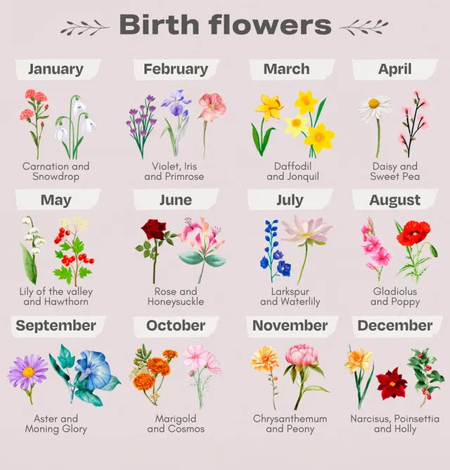 Birth flowers, also known as birthday flowers or birth month flowers, are special flowers that are traditionally associated with each month of the year. These flowers are often used to celebrate birthdays, represent birth months, and convey symbolic meanings. Let's explore the birth flowers specific to each month: