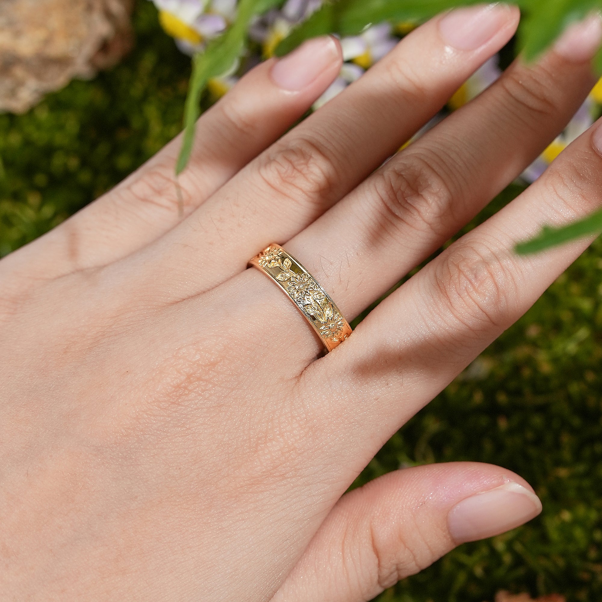 Morning Glorys are associated with the month of September. The Morning Glory ring embodies hope, ephemeral beauty, and daily renewal.