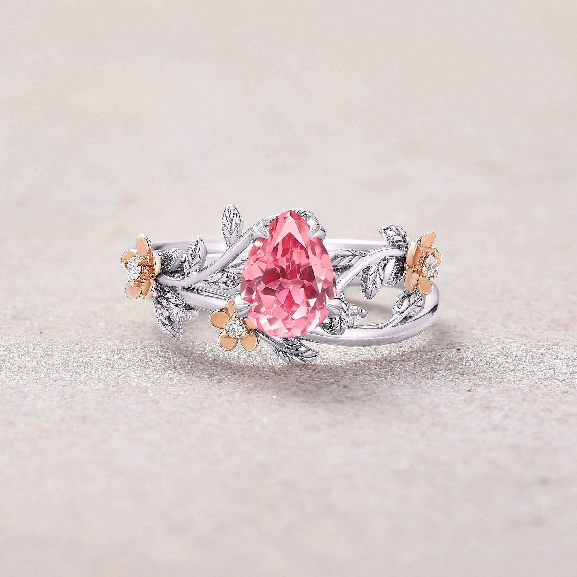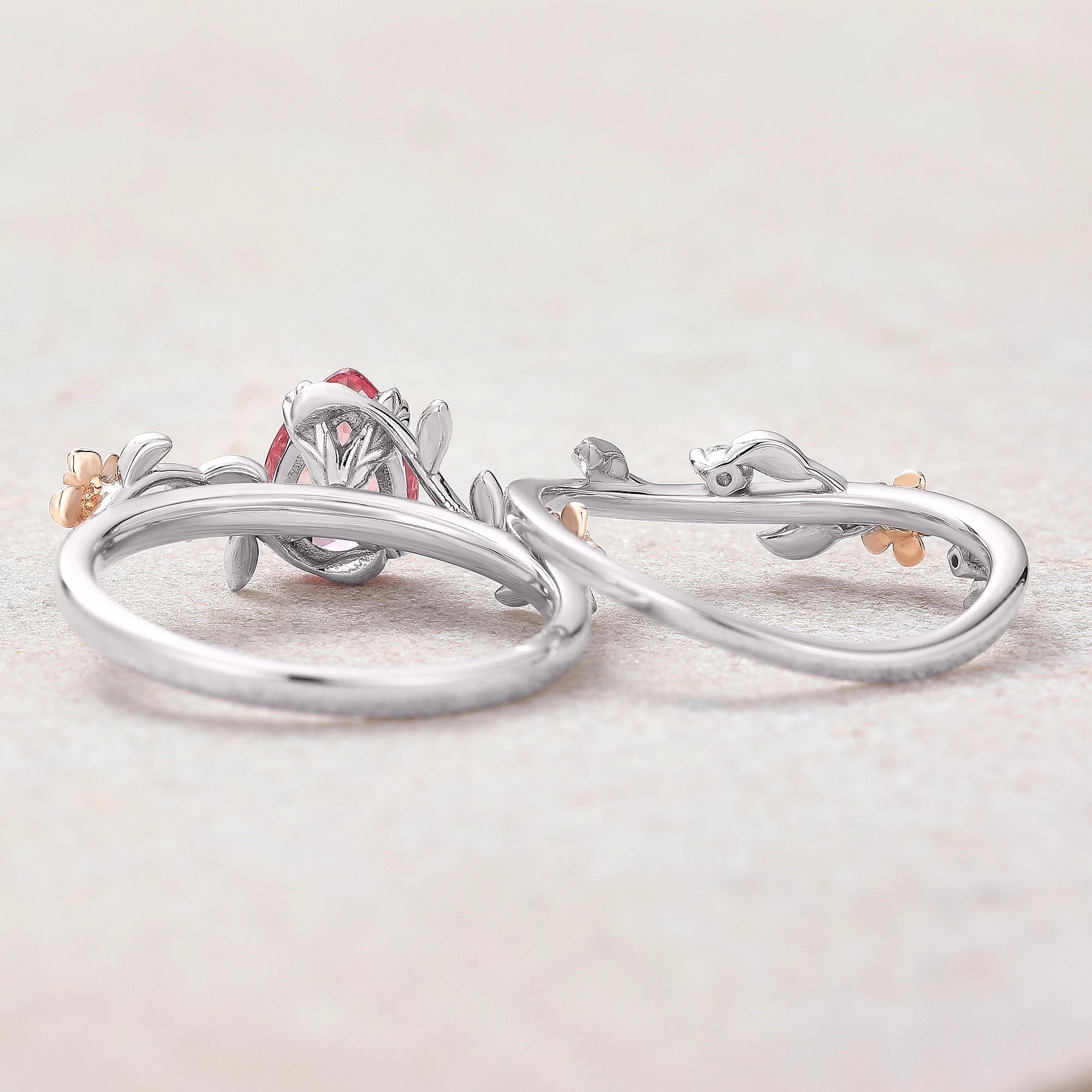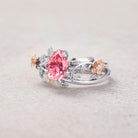 Vintage Peach Sapphire Wedding Ring Set White Gold One of a Kind Pink Sapphire Leaf Engagement Ring Leaf Wedding Band Rings For Women