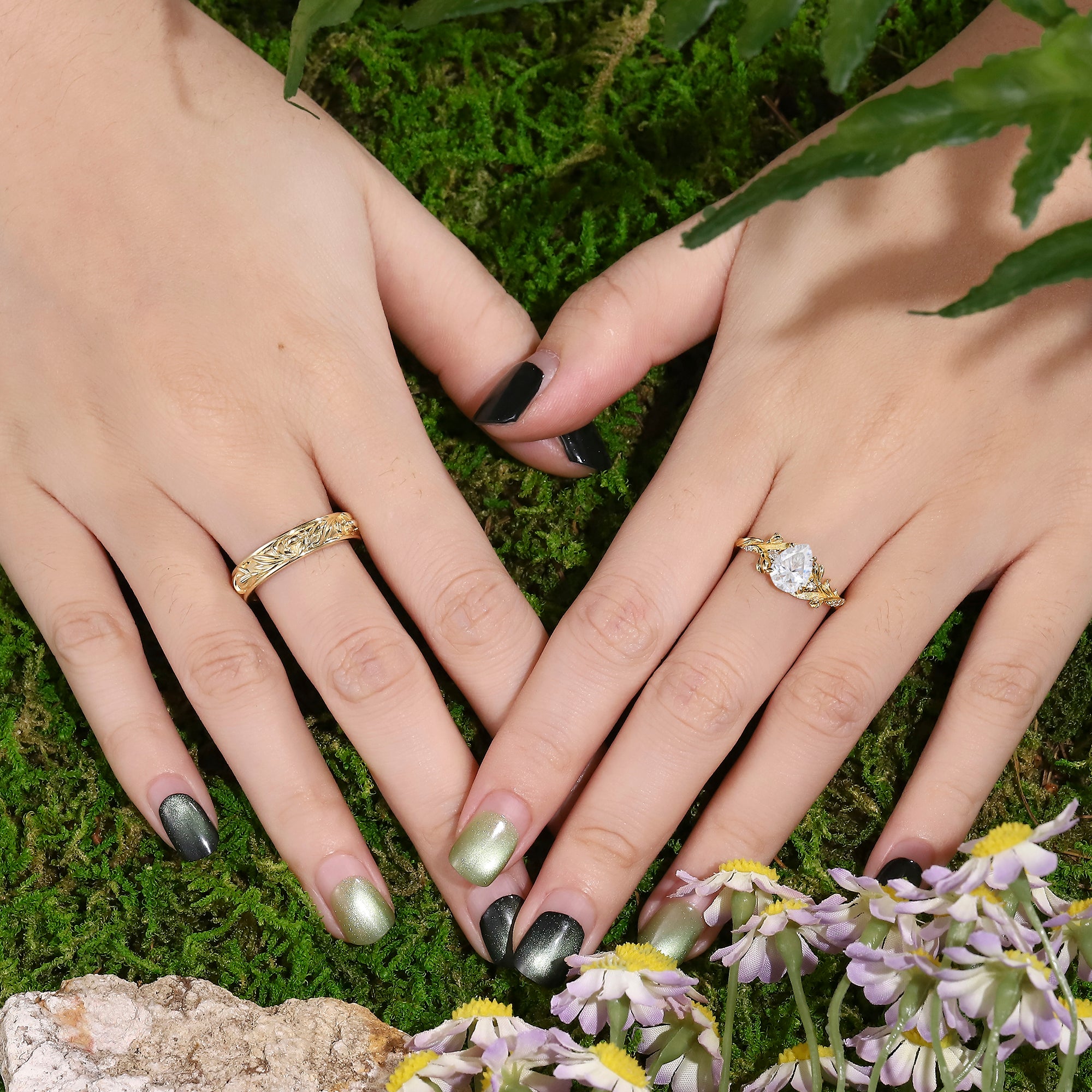 Floral Inspired | 2pcs Snowdrop Design Moissanite Couple Rings
