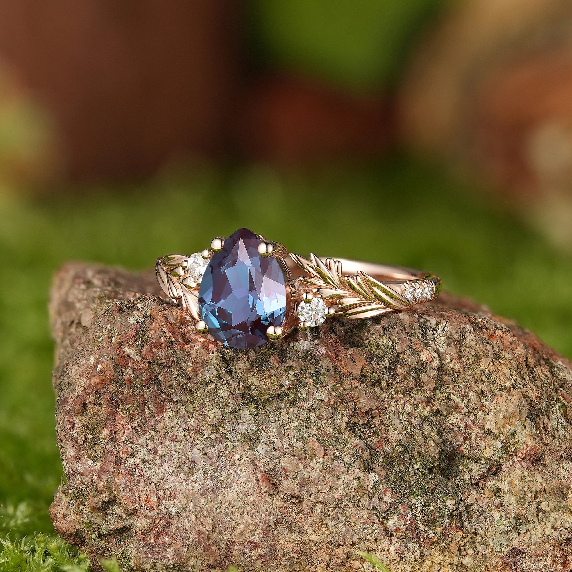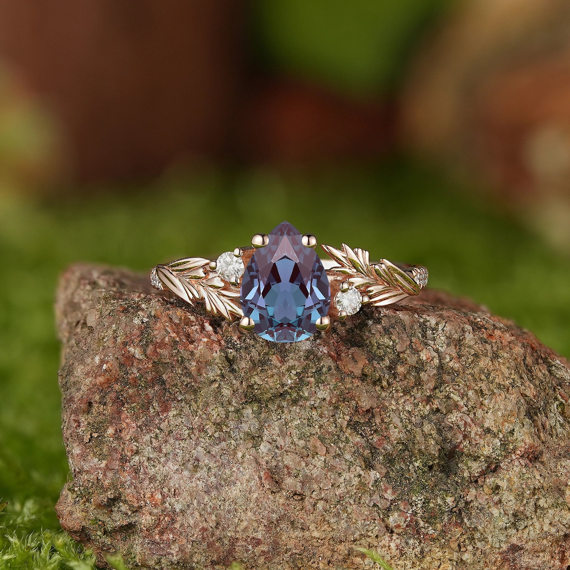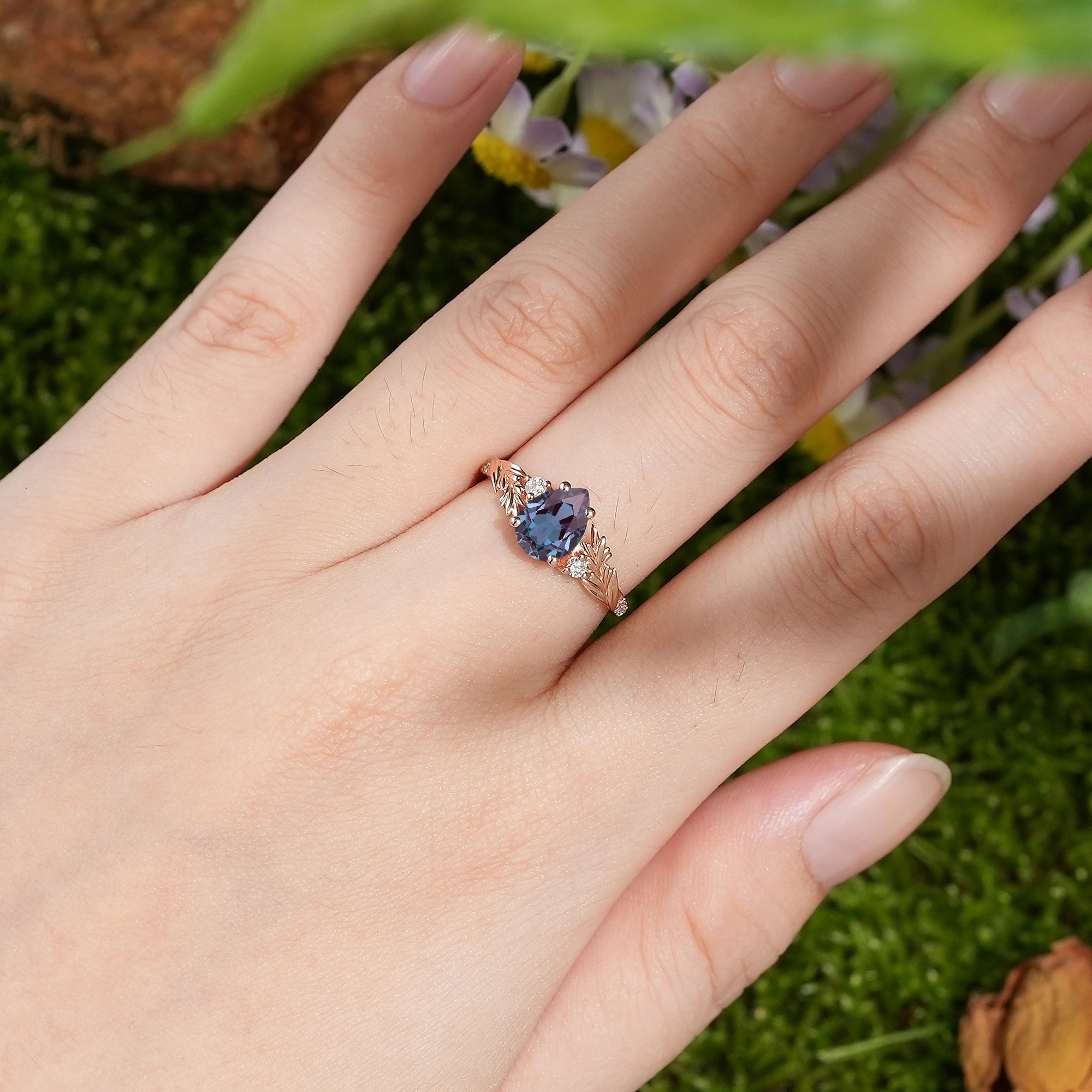 Vintage Pear Cut Alexandrite Engagement Rings Rose Gold Lavender Pattern Wedding Ring Handmake Jewelry Promise Rings For Her