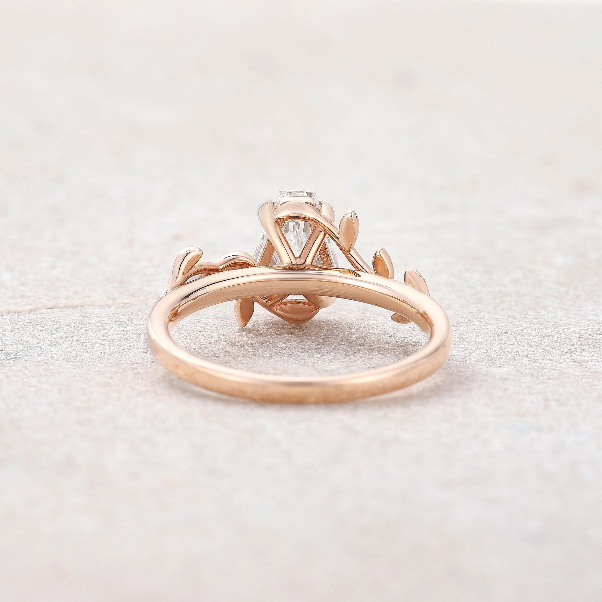 Unique Coffin Cut Moissanite Engagement Ring Yellow Gold Nature Inspired Leaf Design Wedding Ring Custom Promise Rings For Women
