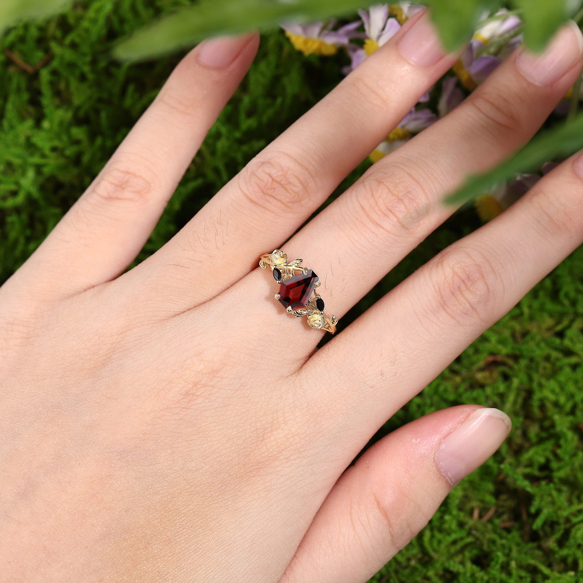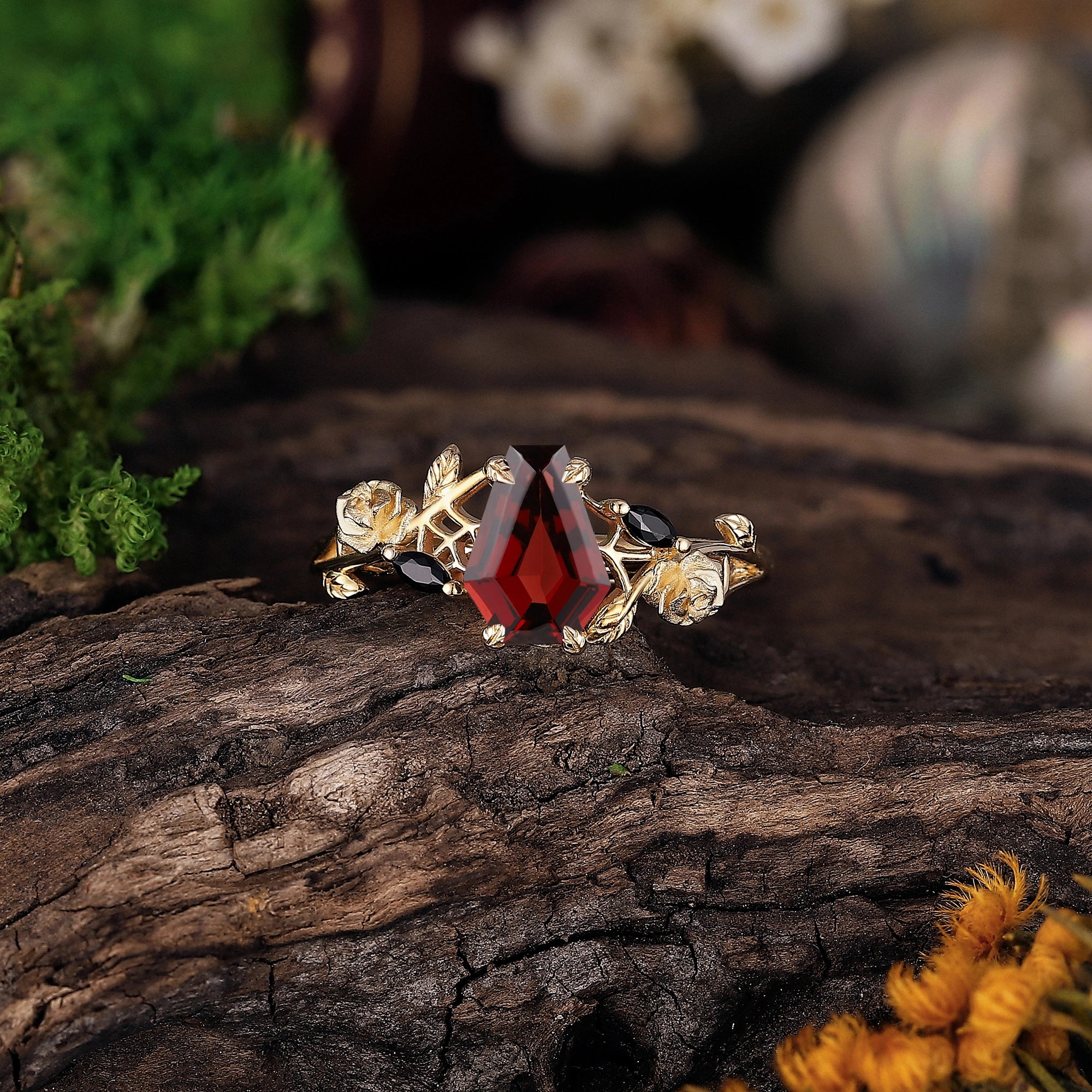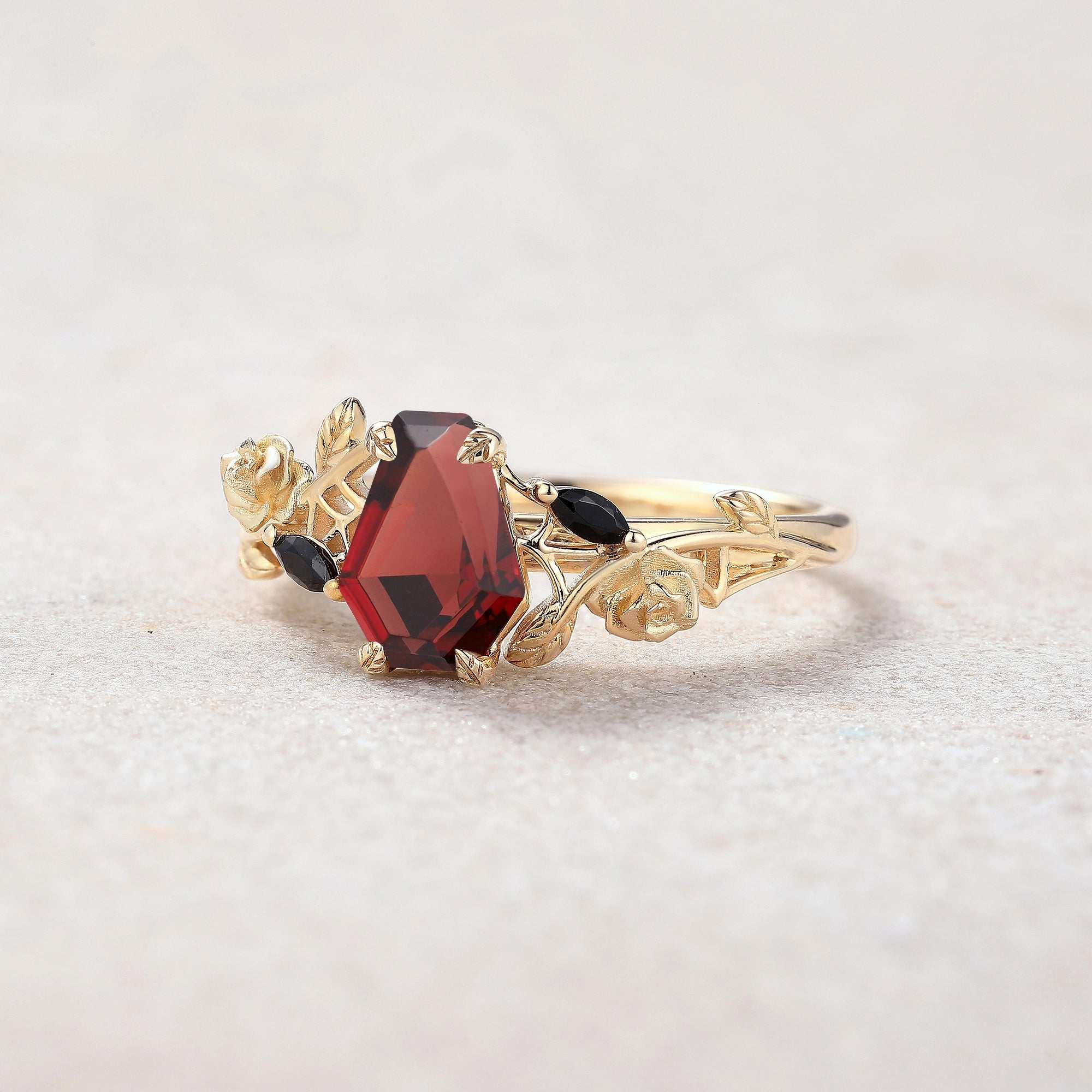 Halloween Theme Design Coffin Cut Ruby Engagement Ring