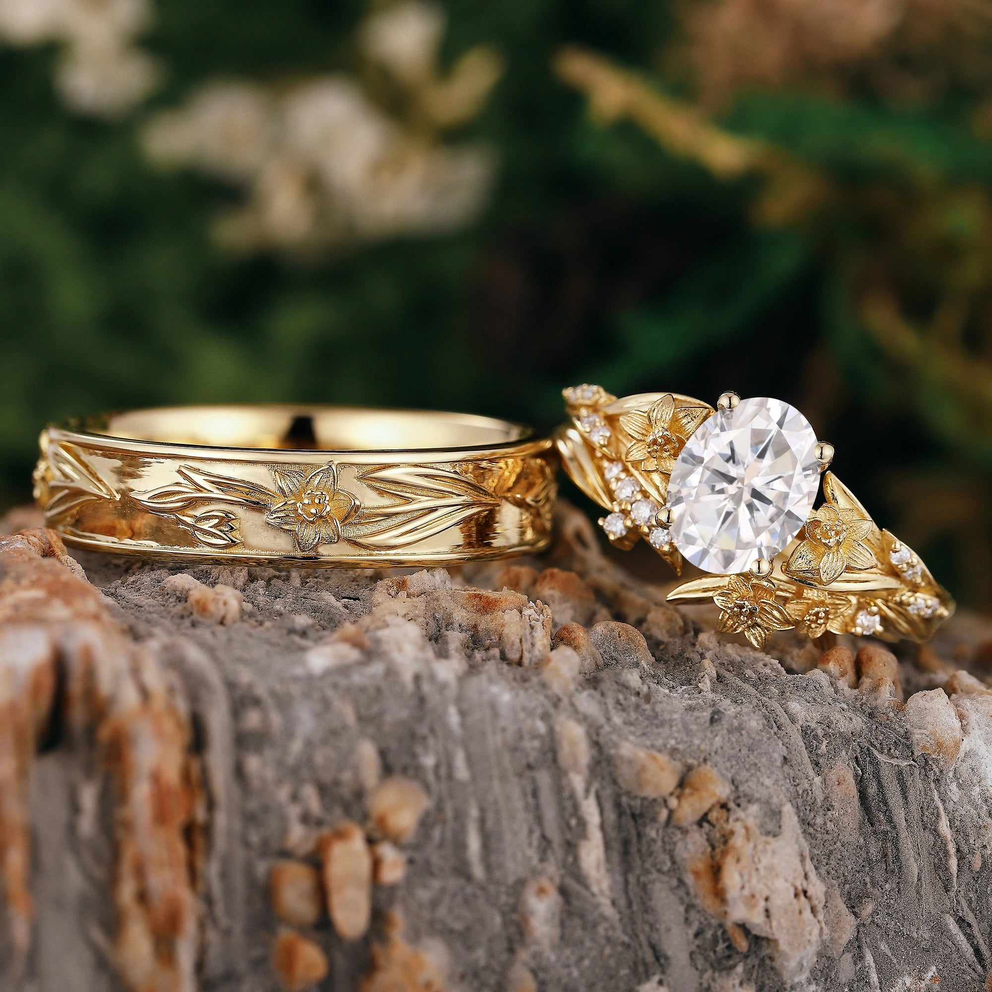 Floral Inspired | 2pcs Daffodils Design Moissanite Couple Rings