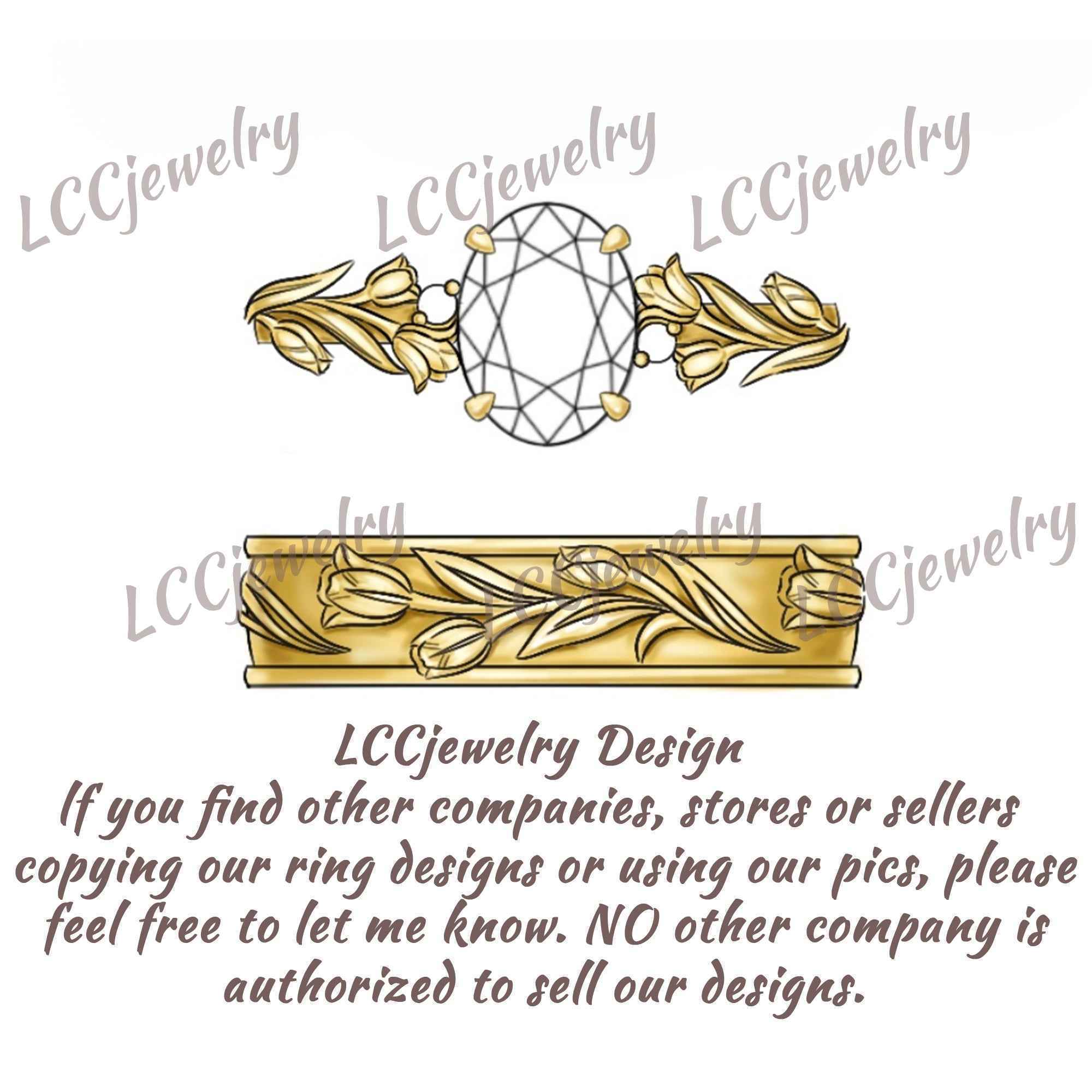 Floral Inspired | 2pc Papalacha Tulip Engagement Ring Set