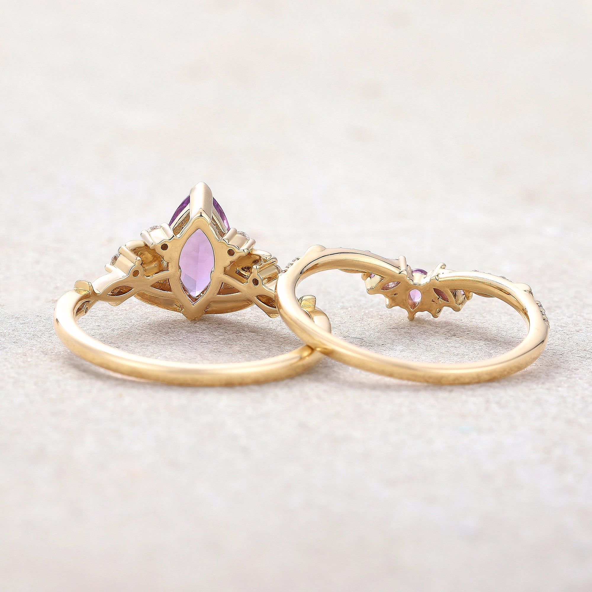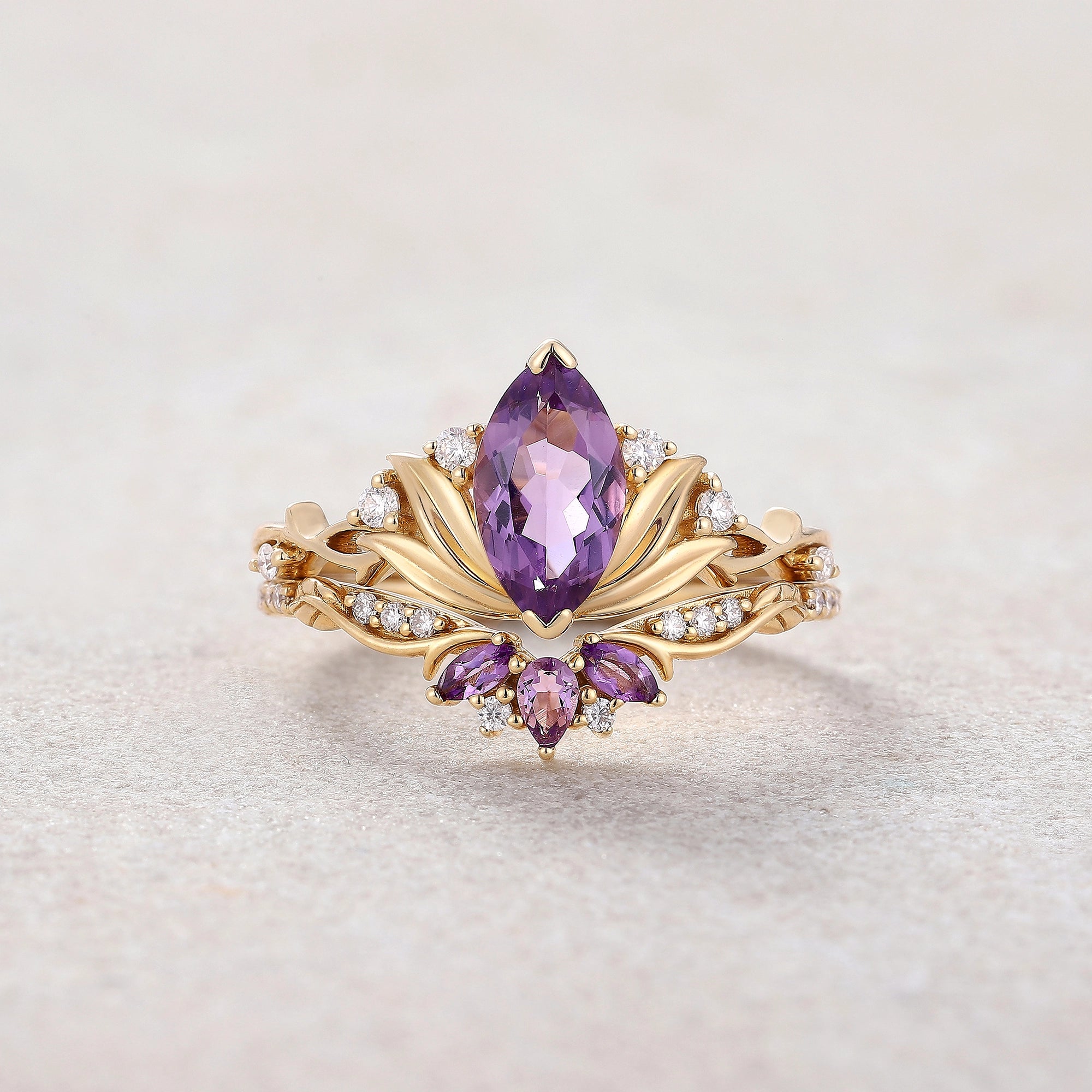 Floral Inspired | Amethyst Water Lily Engagement Ring Set