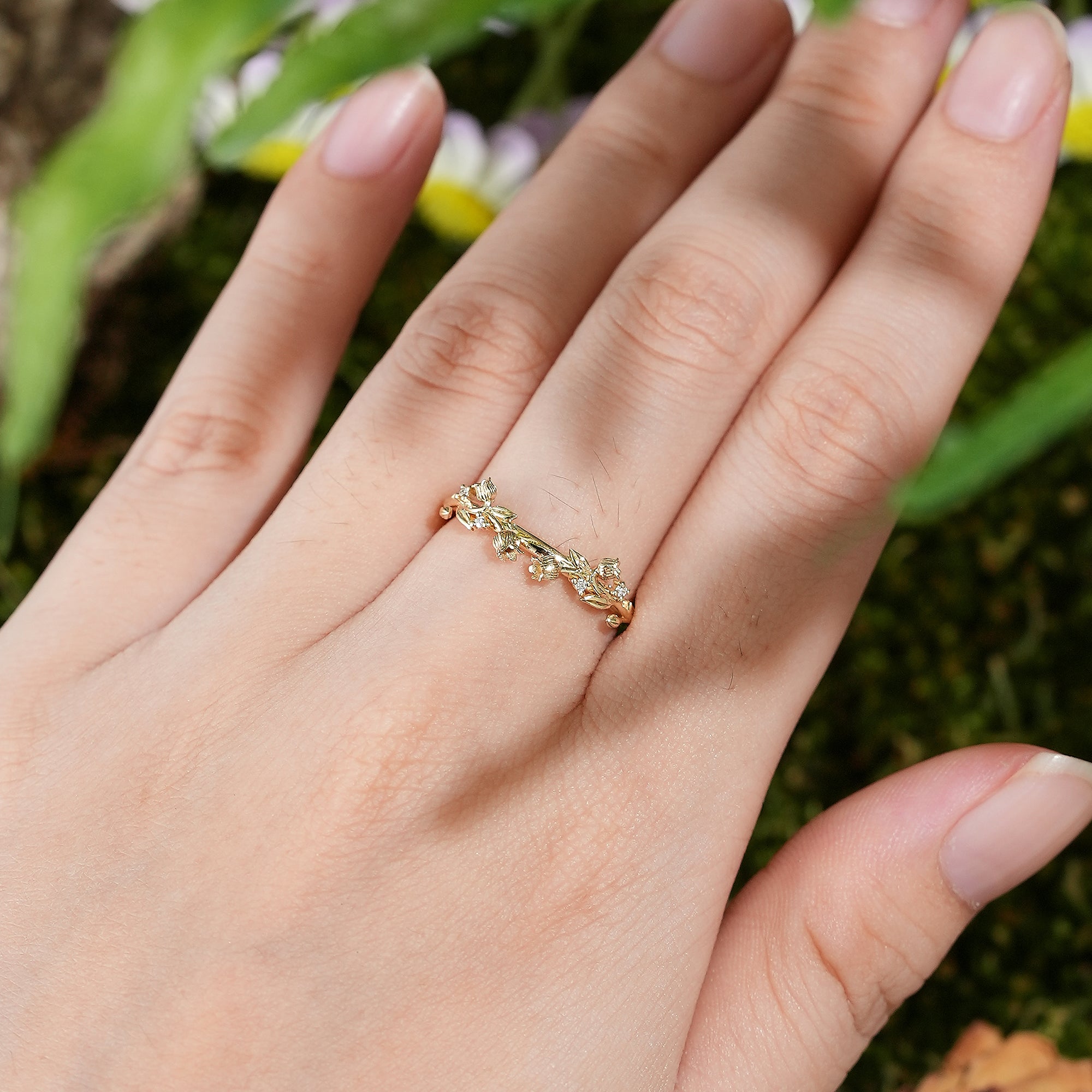 Floral Inspired | Lily of the valley Design Curved Wedding Band