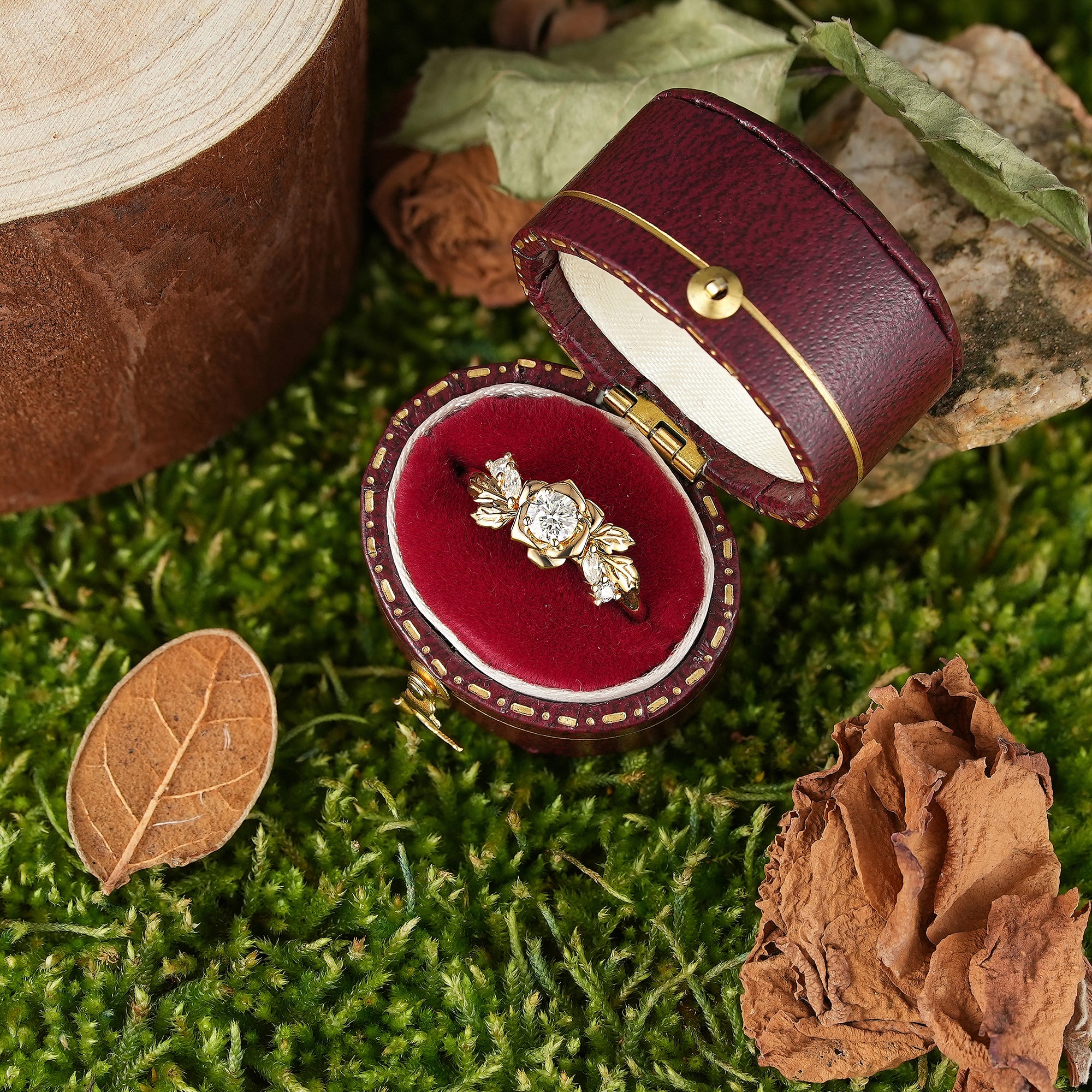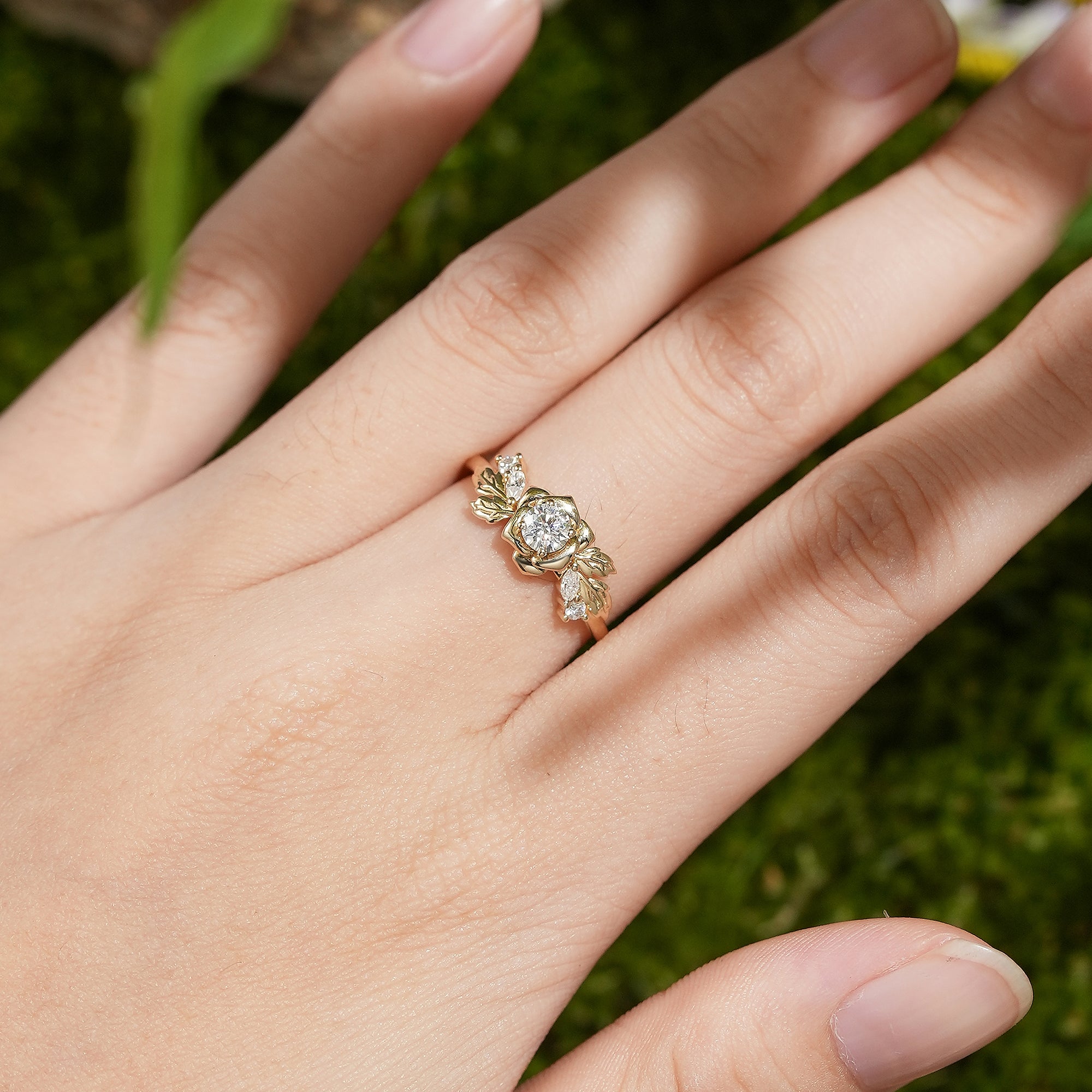 Vintage Moissanite Floral Engagement Ring Rose Gold Dainty Leaf Wedding Band Rose Ring Anniversary Rings For Women Handmake Jewelry