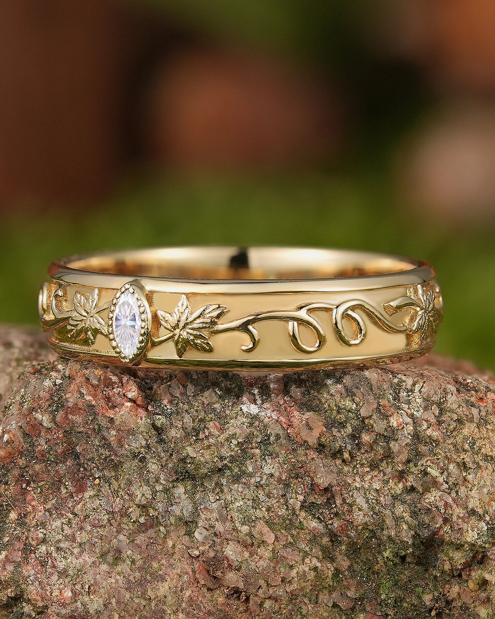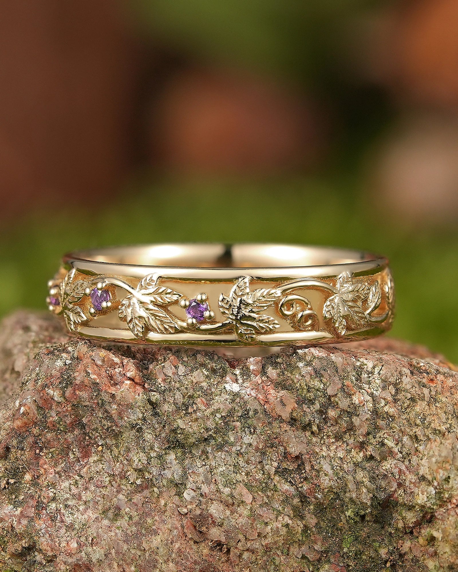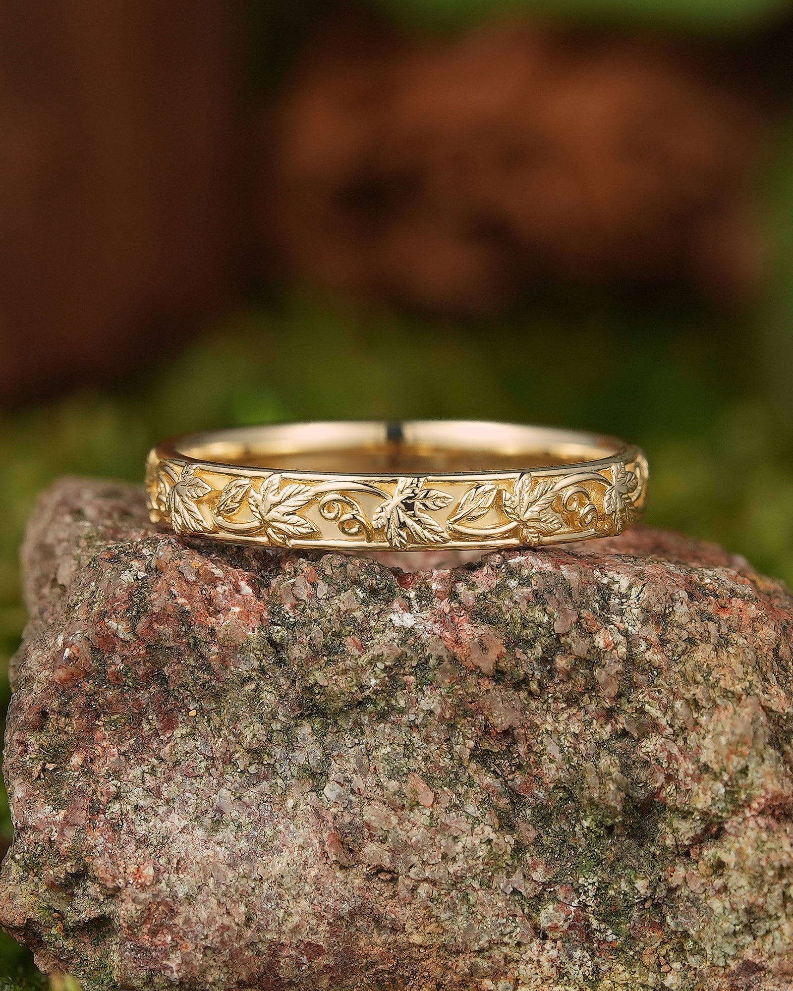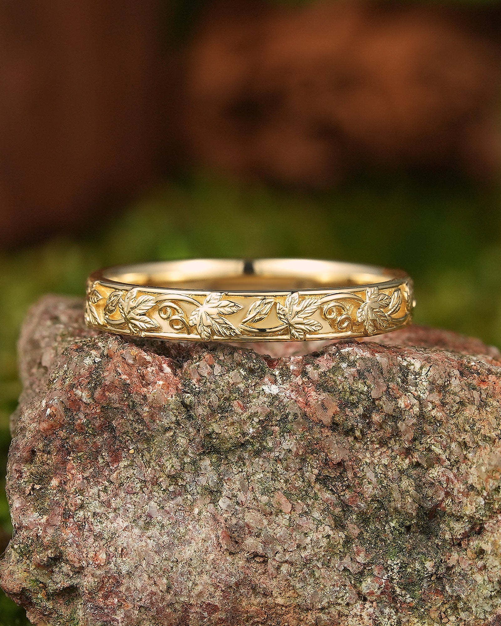 The grape leaf ring symbolizes abundance, vitality and harmony. The delicate carving of each grape leaf shows the natural elegance and vitality, as if the grapevine spreads around the fingertips. This ring not only represents harvest and prosperity, but also implies deep emotional connection and family warmth.