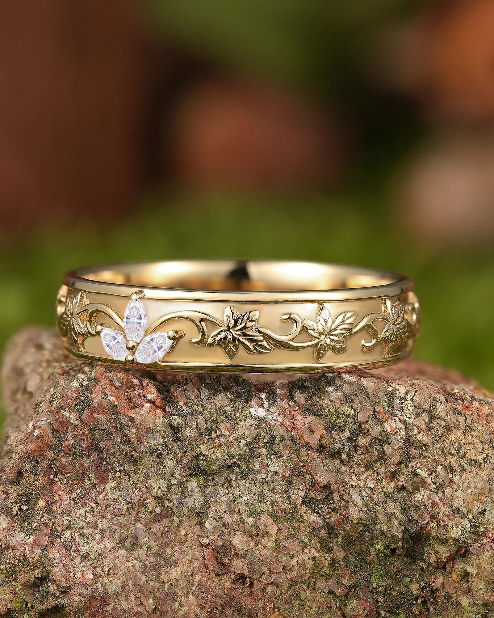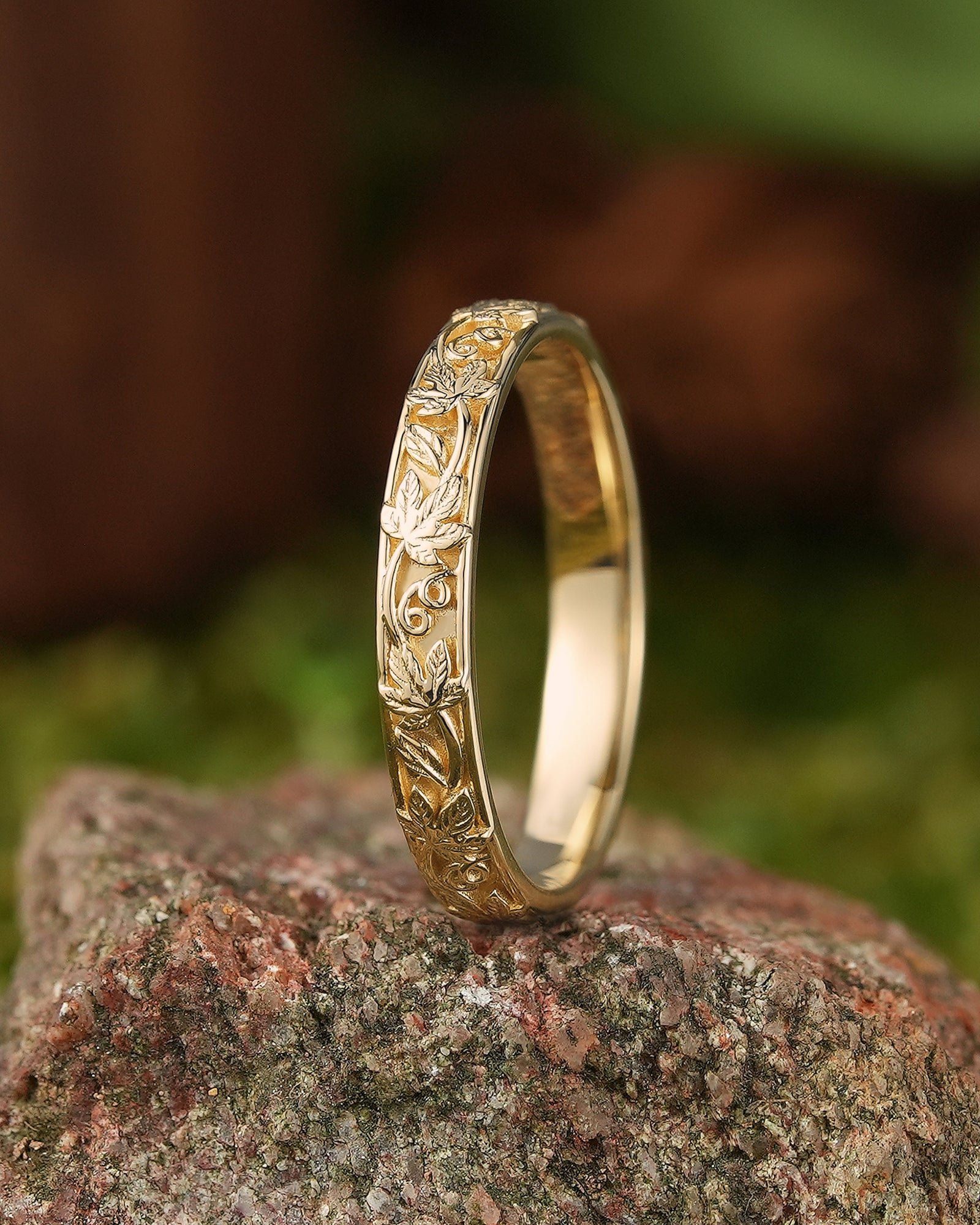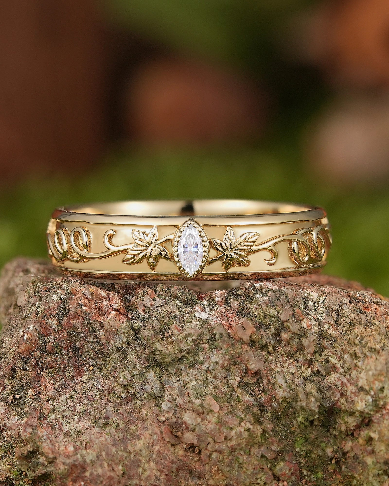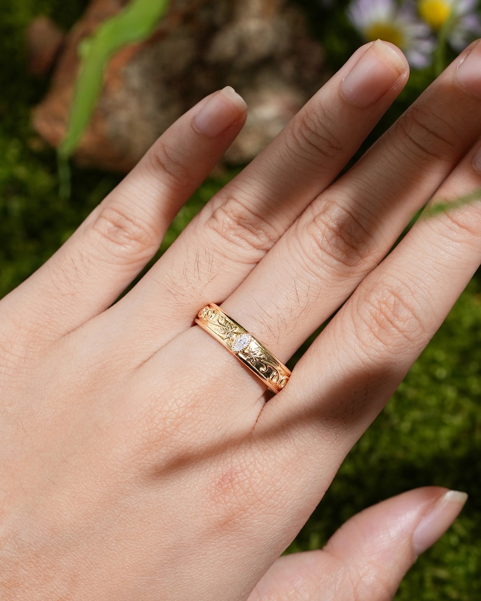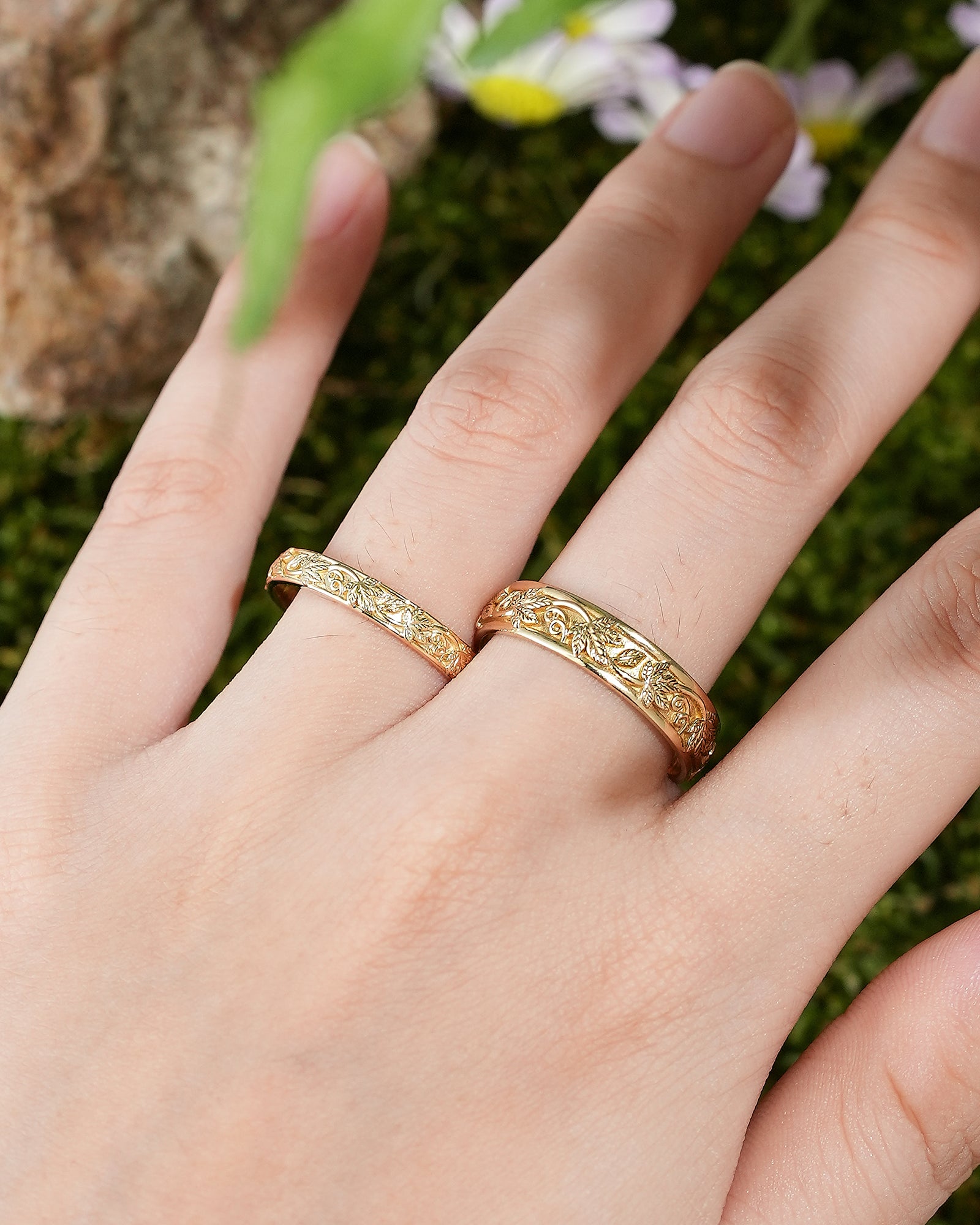 The grape leaf ring symbolizes abundance, vitality and harmony. The delicate carving of each grape leaf shows the natural elegance and vitality, as if the grapevine spreads around the fingertips. This ring not only represents harvest and prosperity, but also implies deep emotional connection and family warmth.