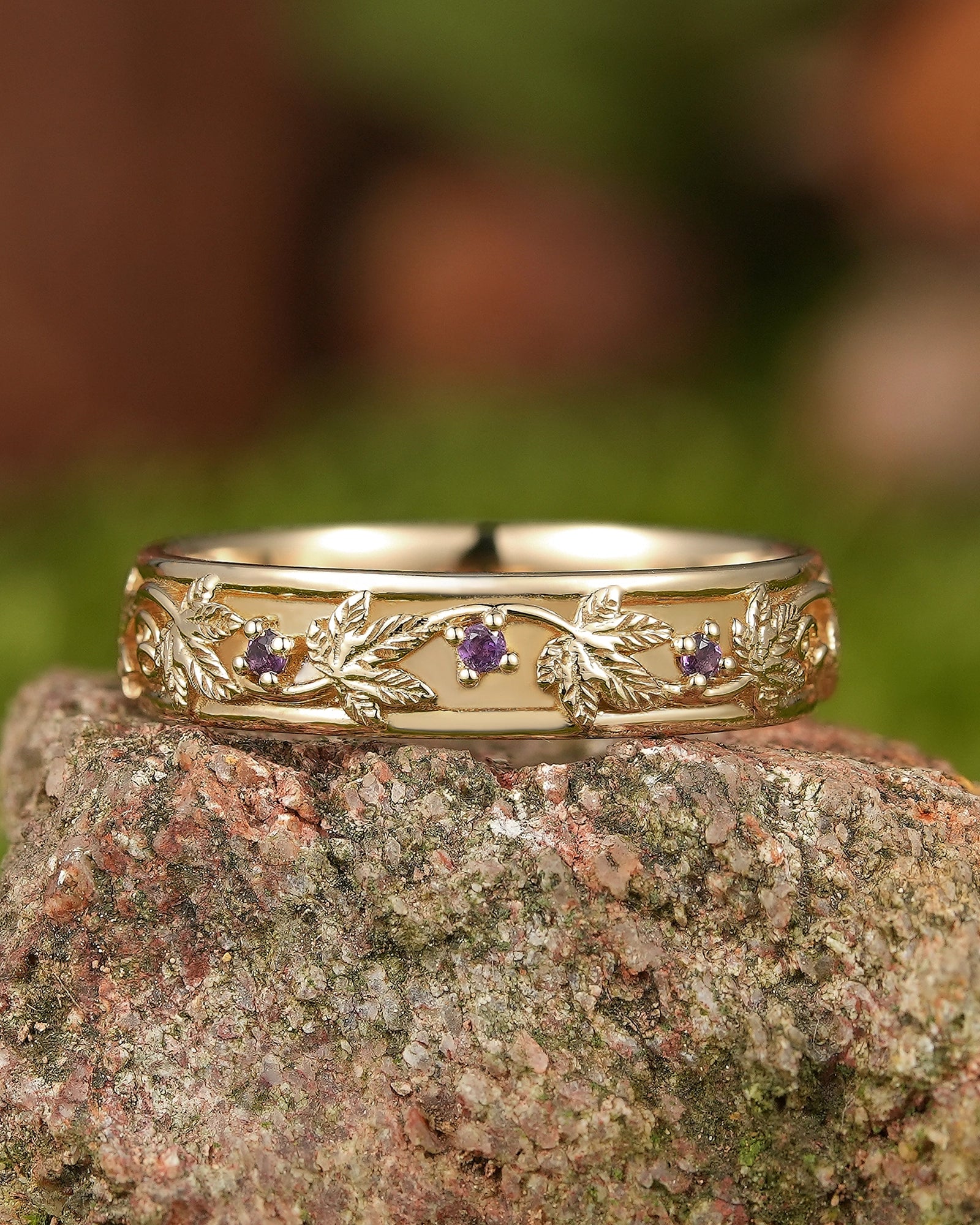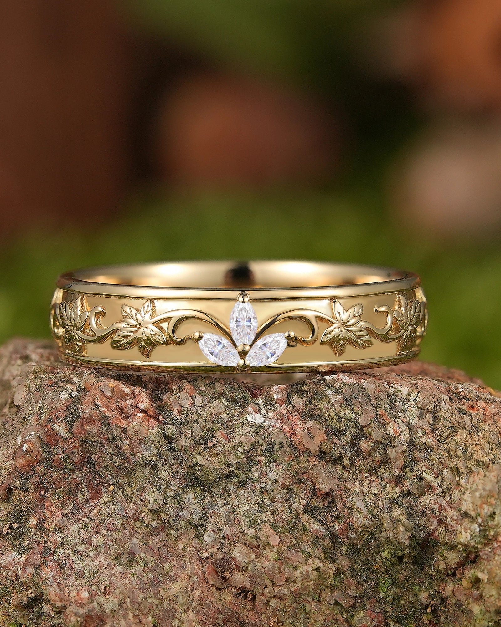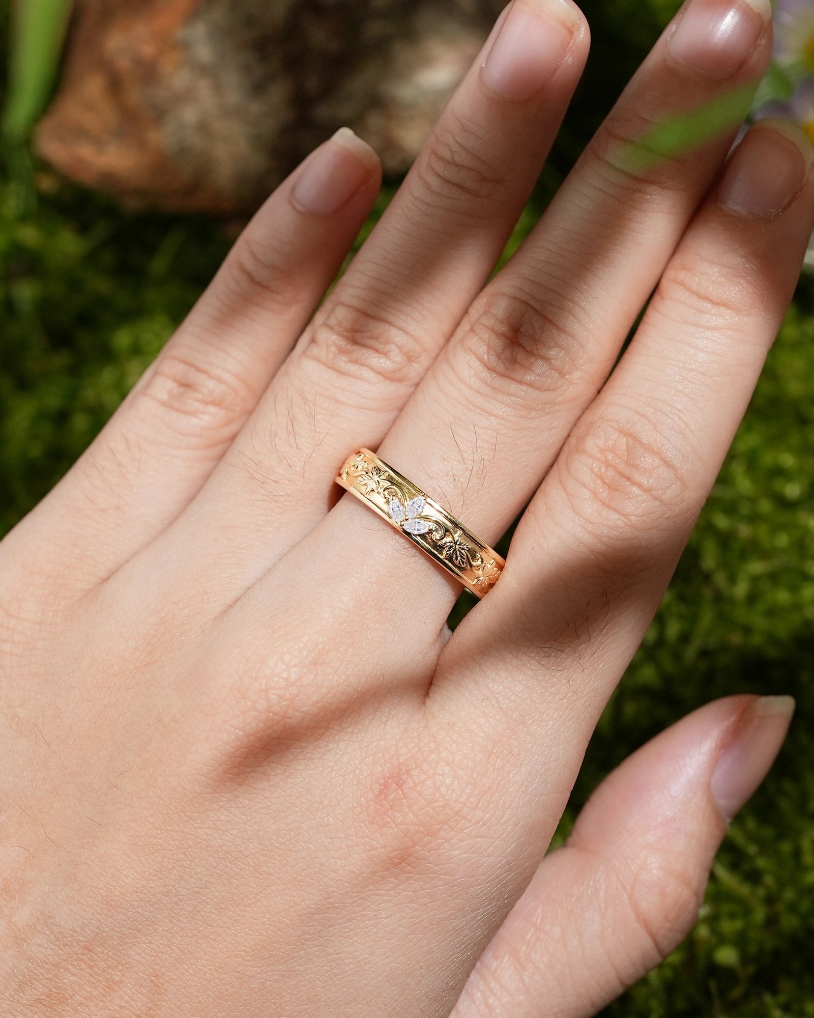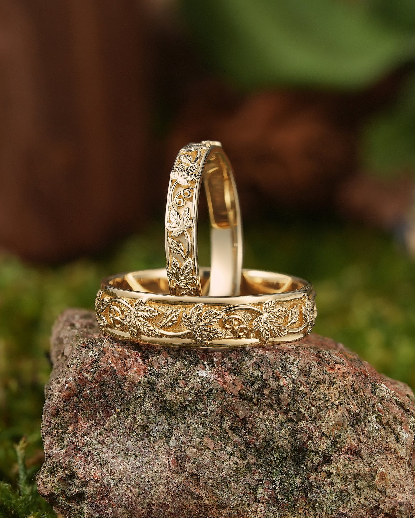 The grape leaf ring symbolizes abundance, vitality and harmony. The delicate carving of each grape leaf shows the natural elegance and vitality, as if the grapevine spreads around the fingertips. This ring not only represents harvest and prosperity, but also implies deep emotional connection and family warmth.