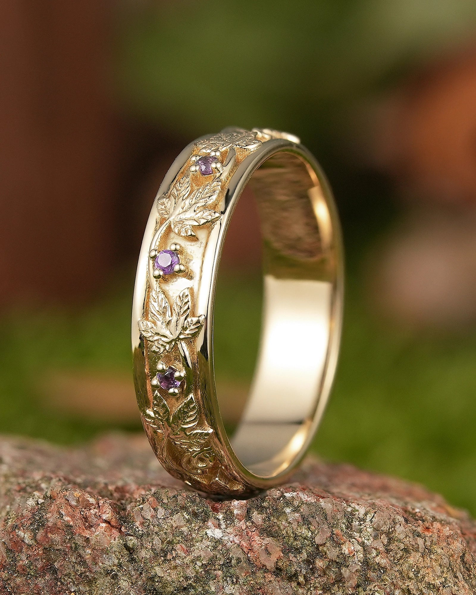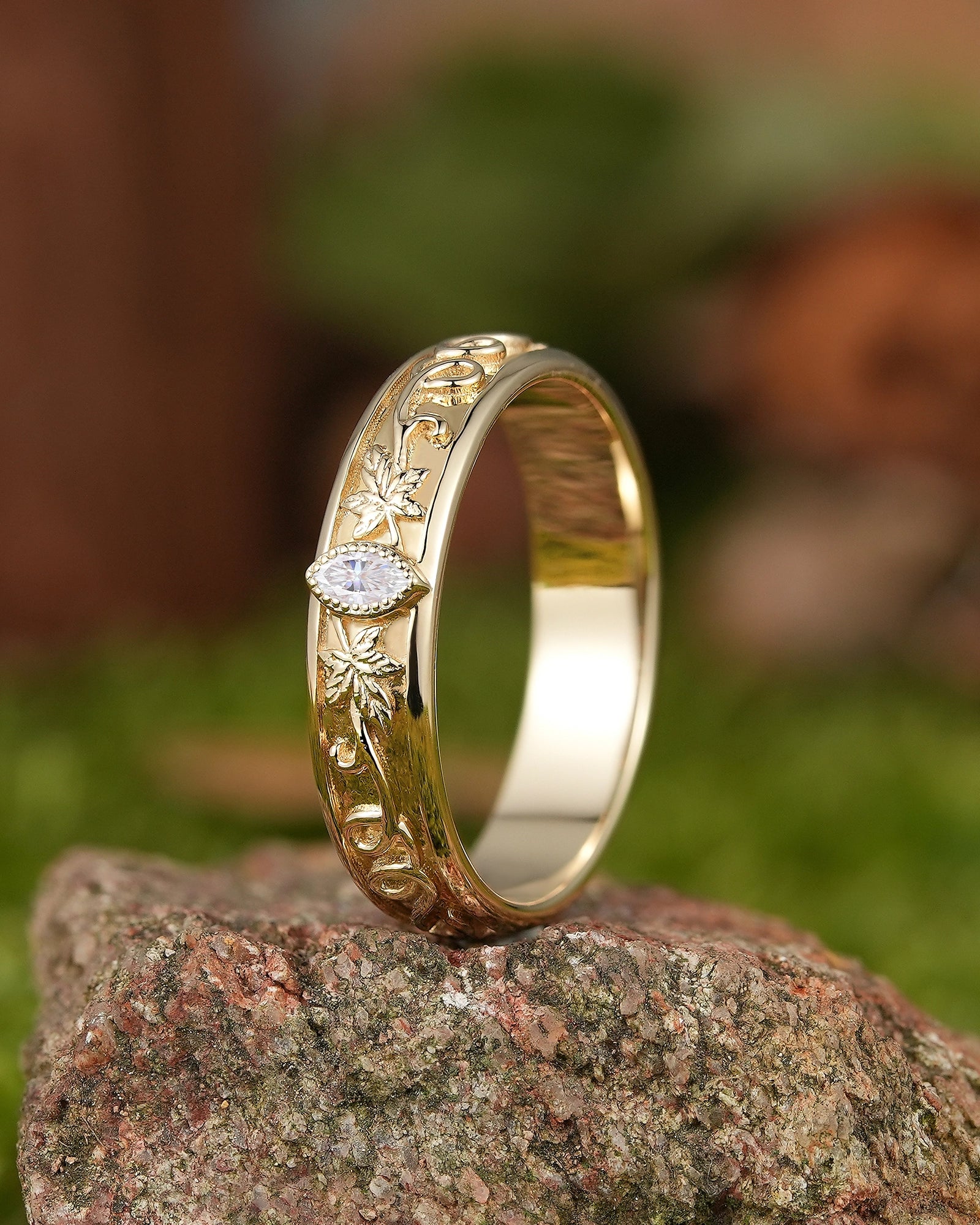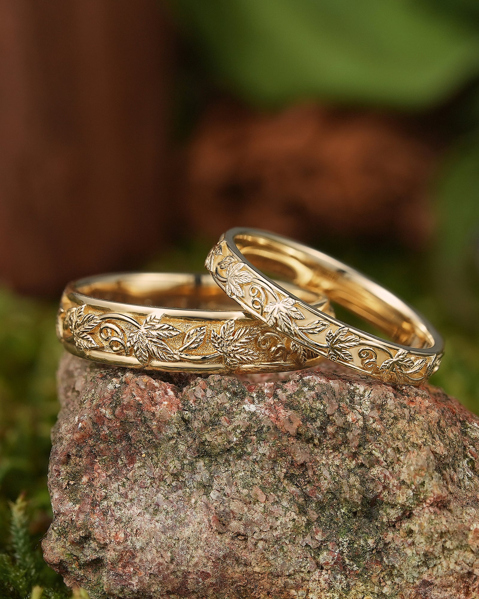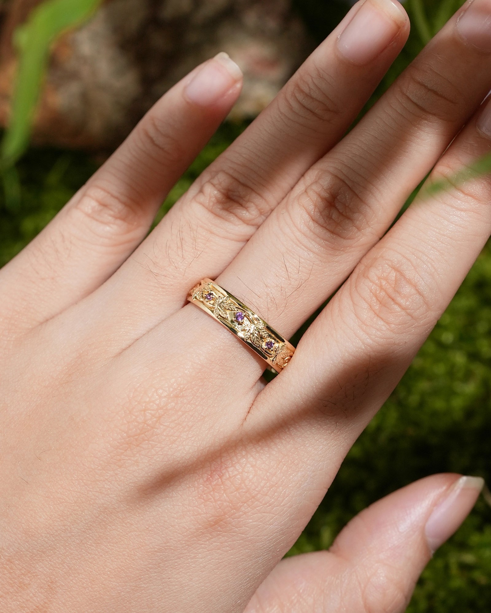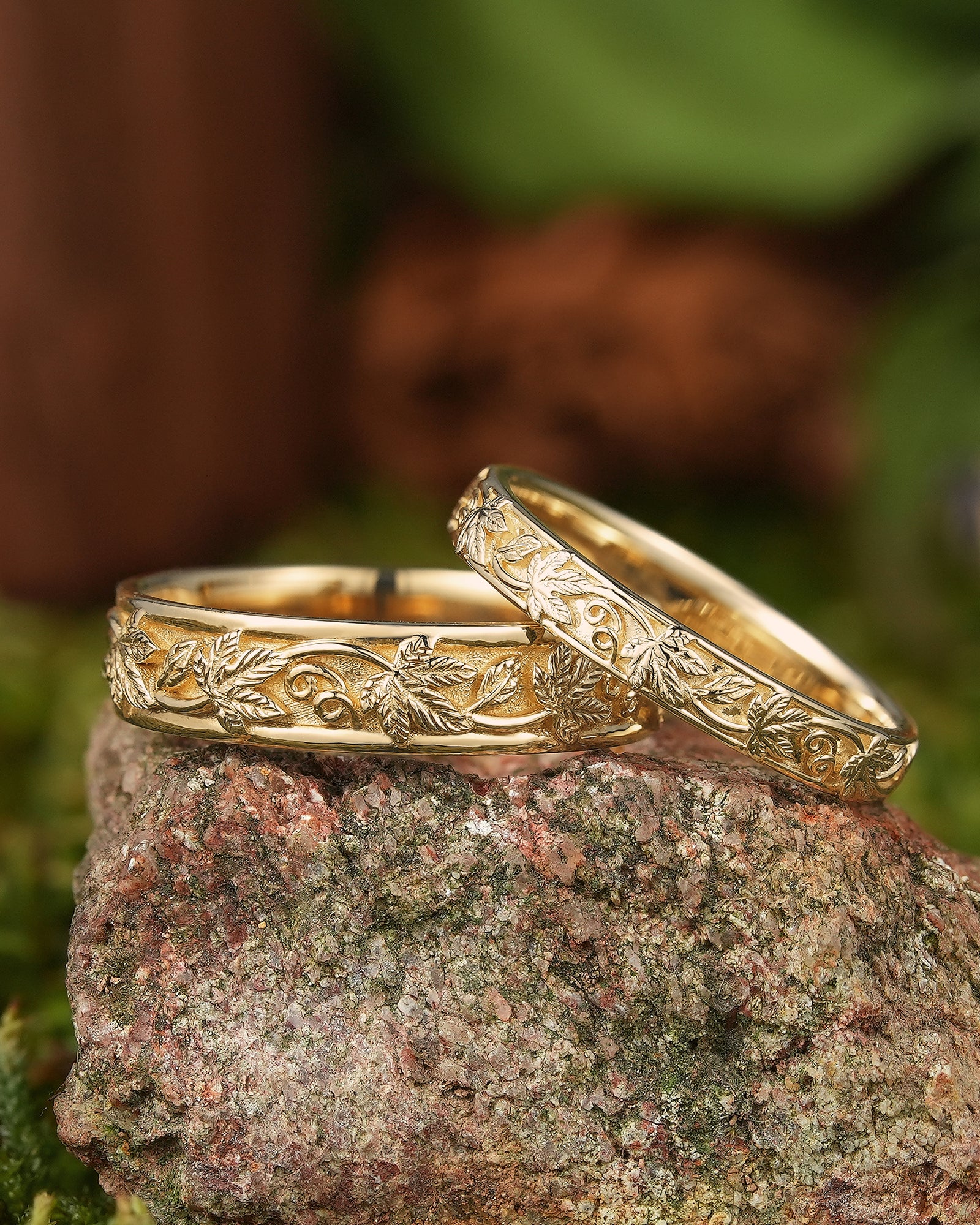 The grape leaf ring symbolizes abundance, vitality and harmony. The delicate carving of each grape leaf shows the natural elegance and vitality, as if the grapevine spreads around the fingertips. This ring not only represents harvest and prosperity, but also implies deep emotional connection and family warmth.