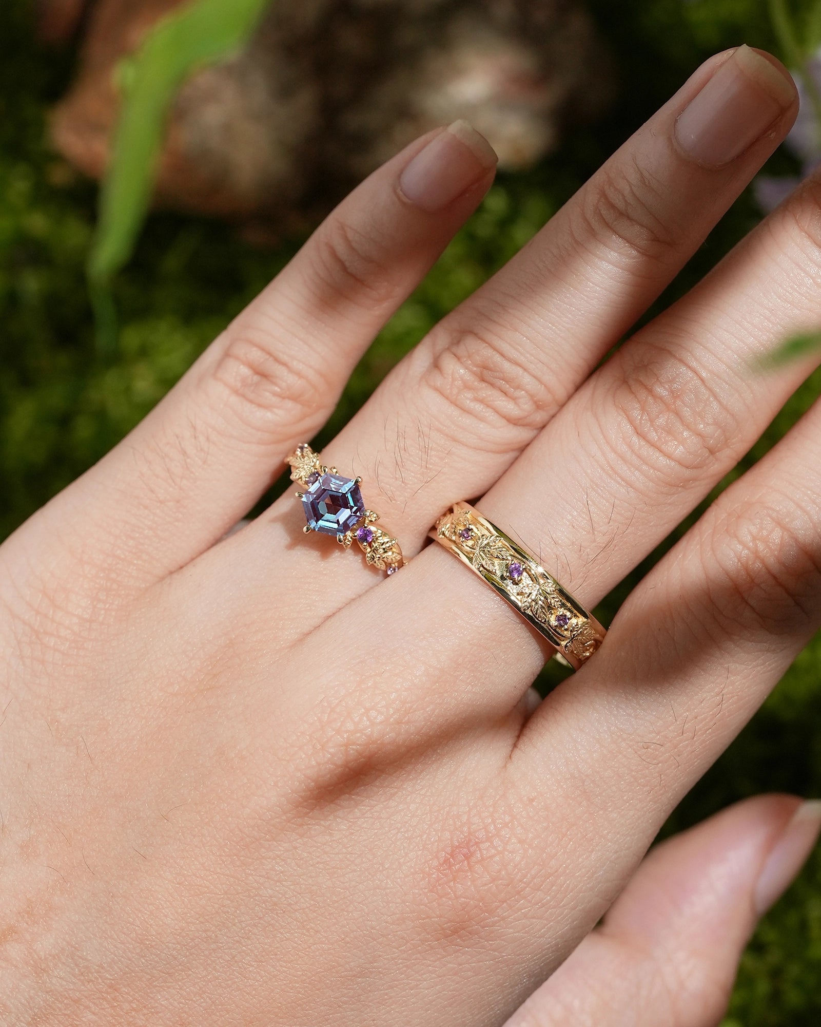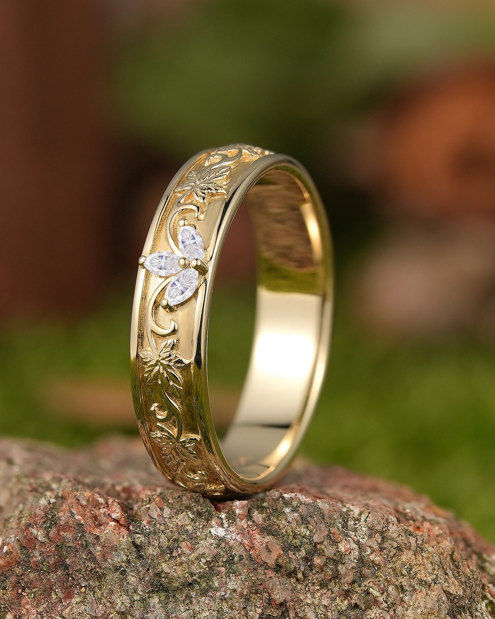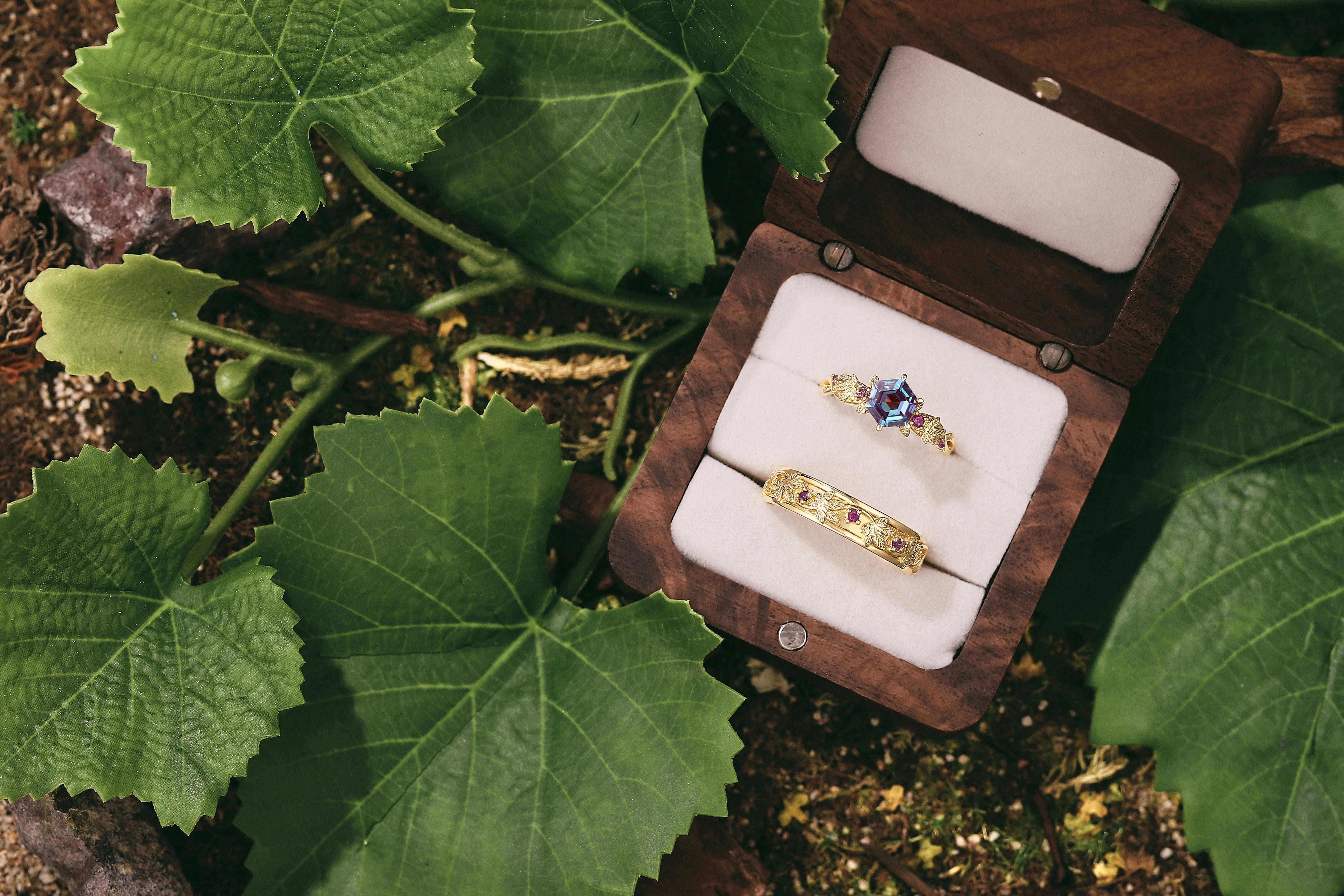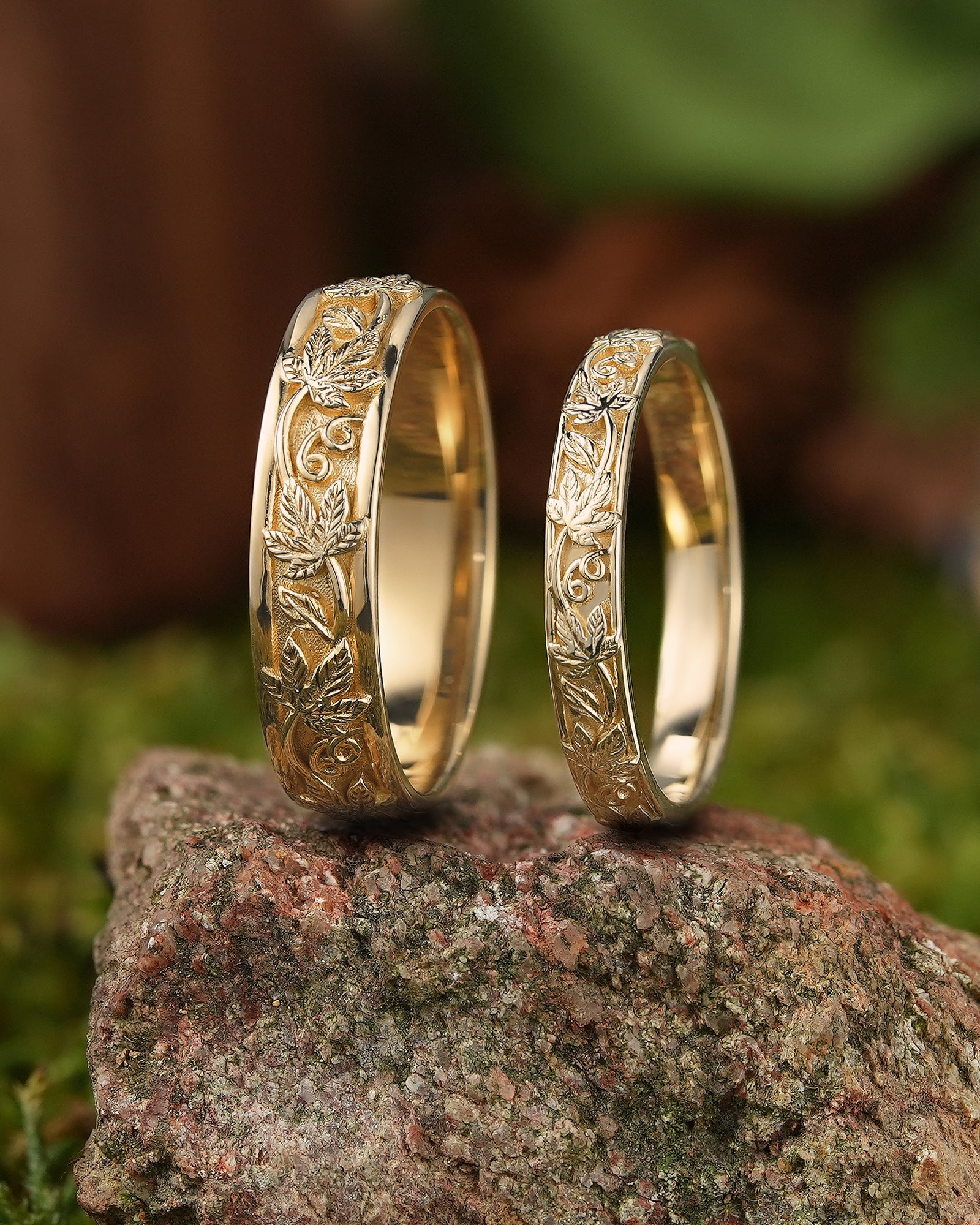 The grape leaf ring symbolizes abundance, vitality and harmony. The delicate carving of each grape leaf shows the natural elegance and vitality, as if the grapevine spreads around the fingertips. This ring not only represents harvest and prosperity, but also implies deep emotional connection and family warmth.