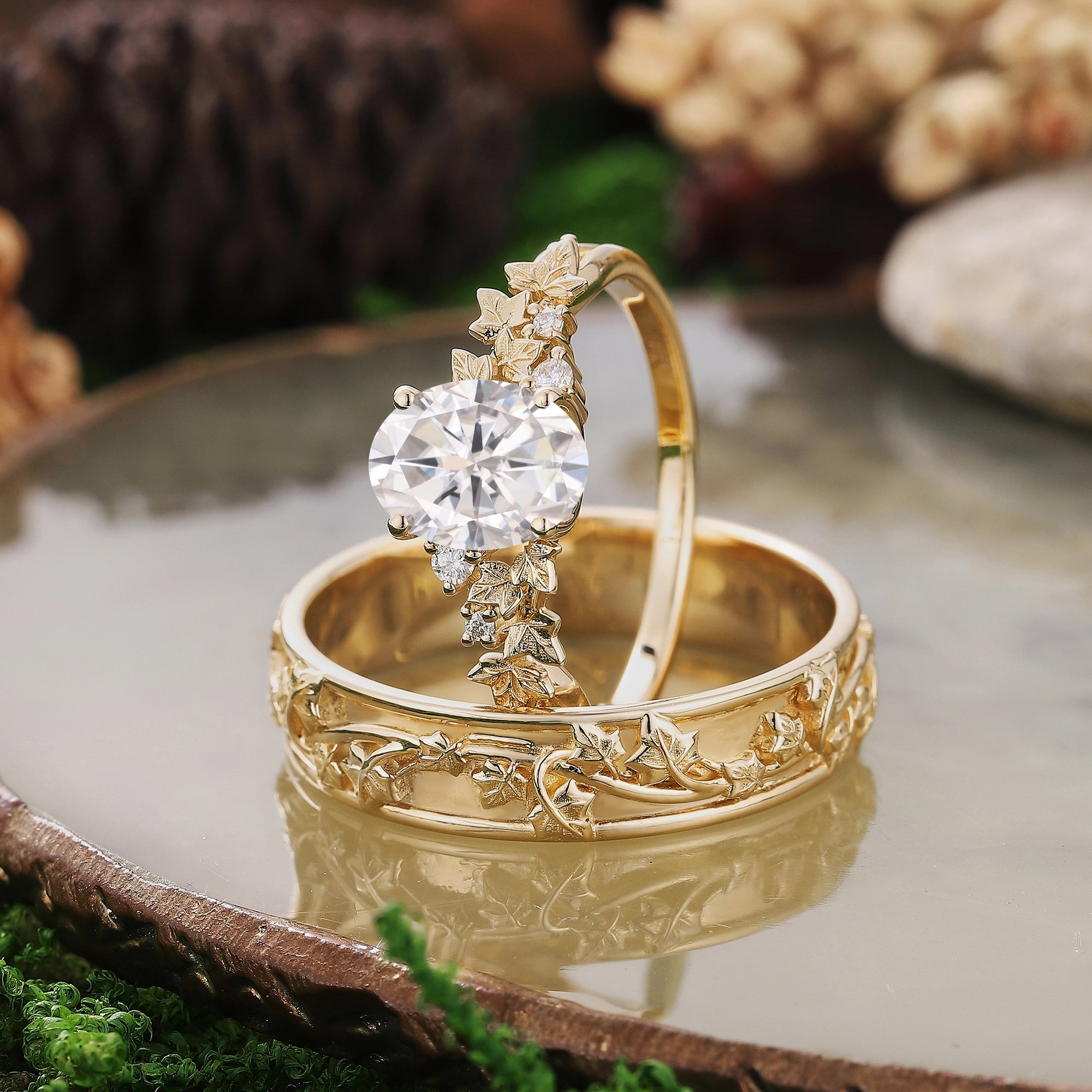 Leaf Inspired| 2pcs Ivy Leaf Design Moissanite Couple Ring Set