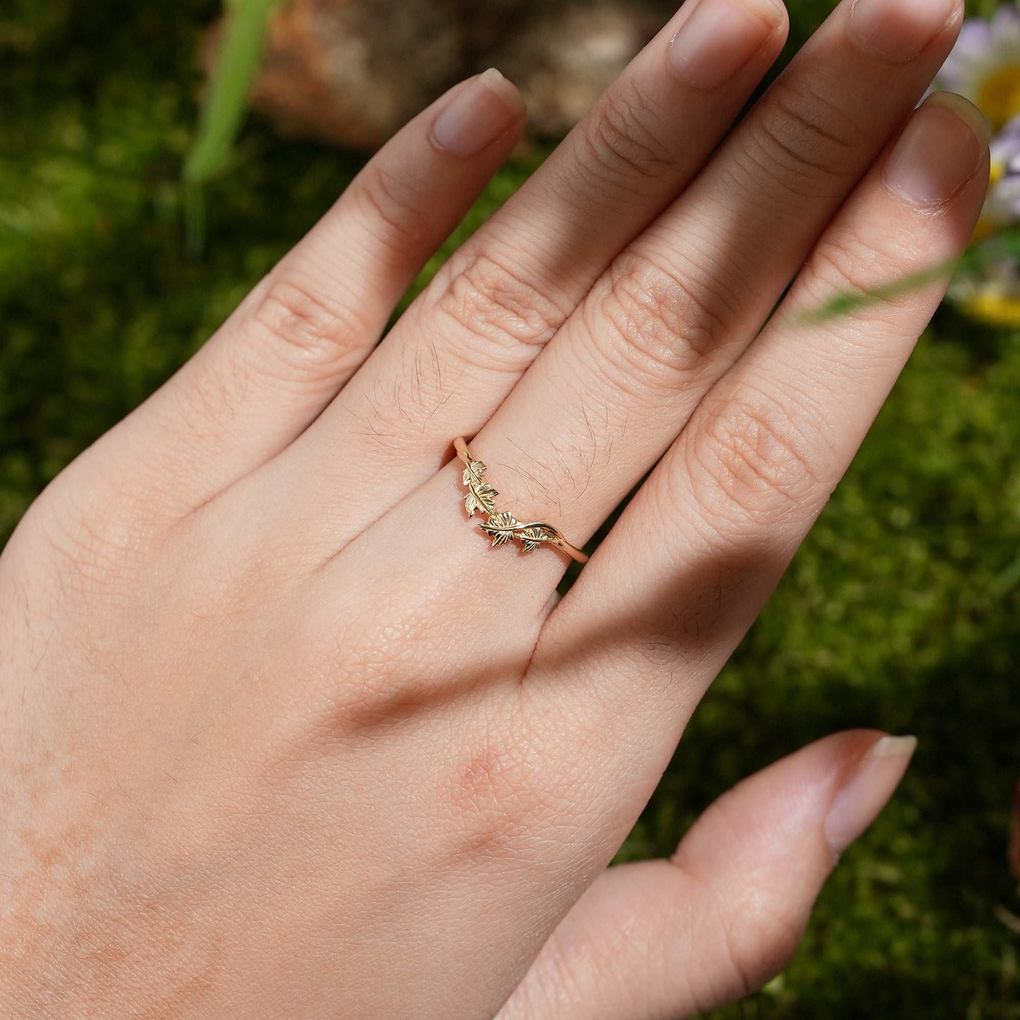 Leaf Inspired | Unique Maple Leaf Design Curved Wedding Band