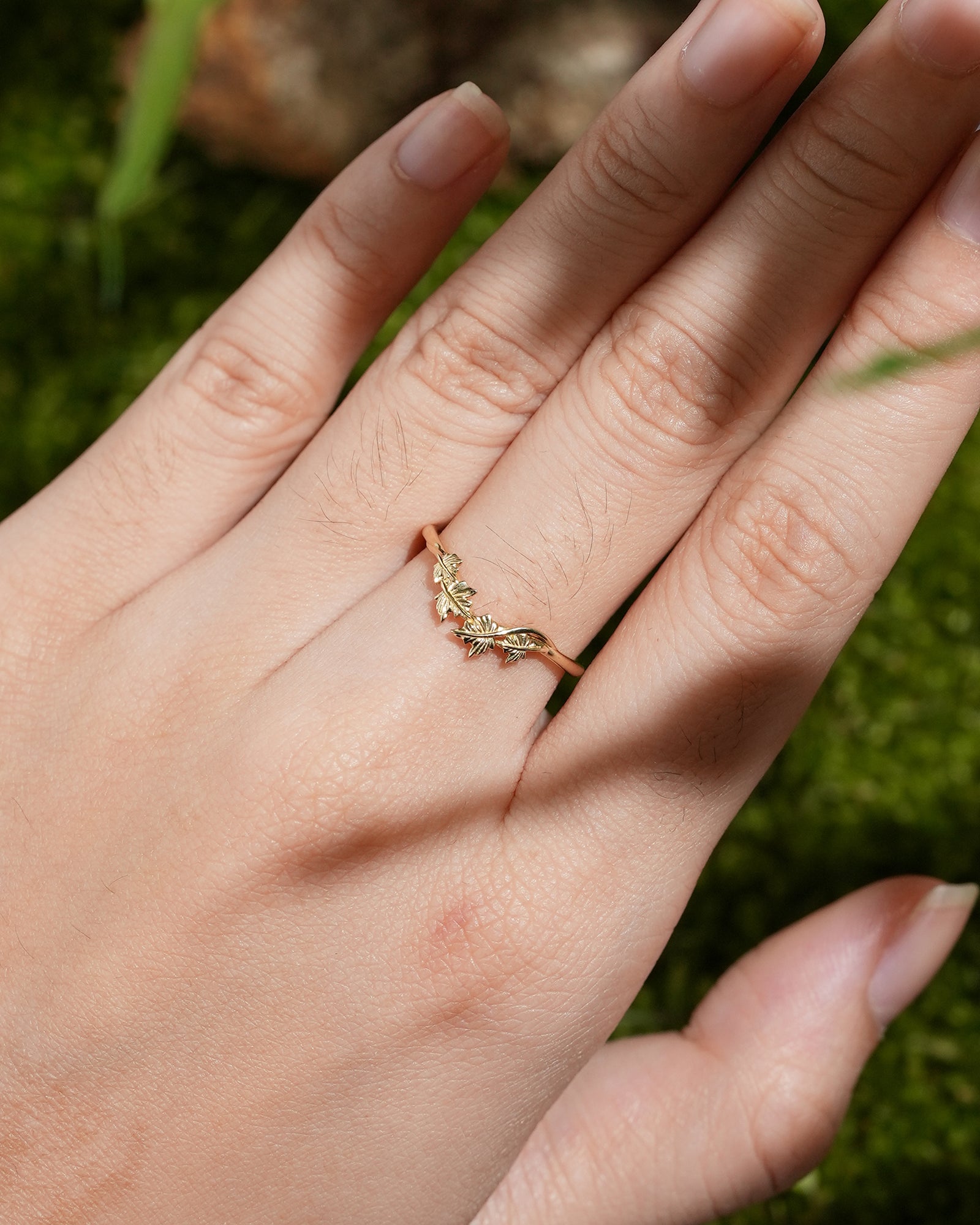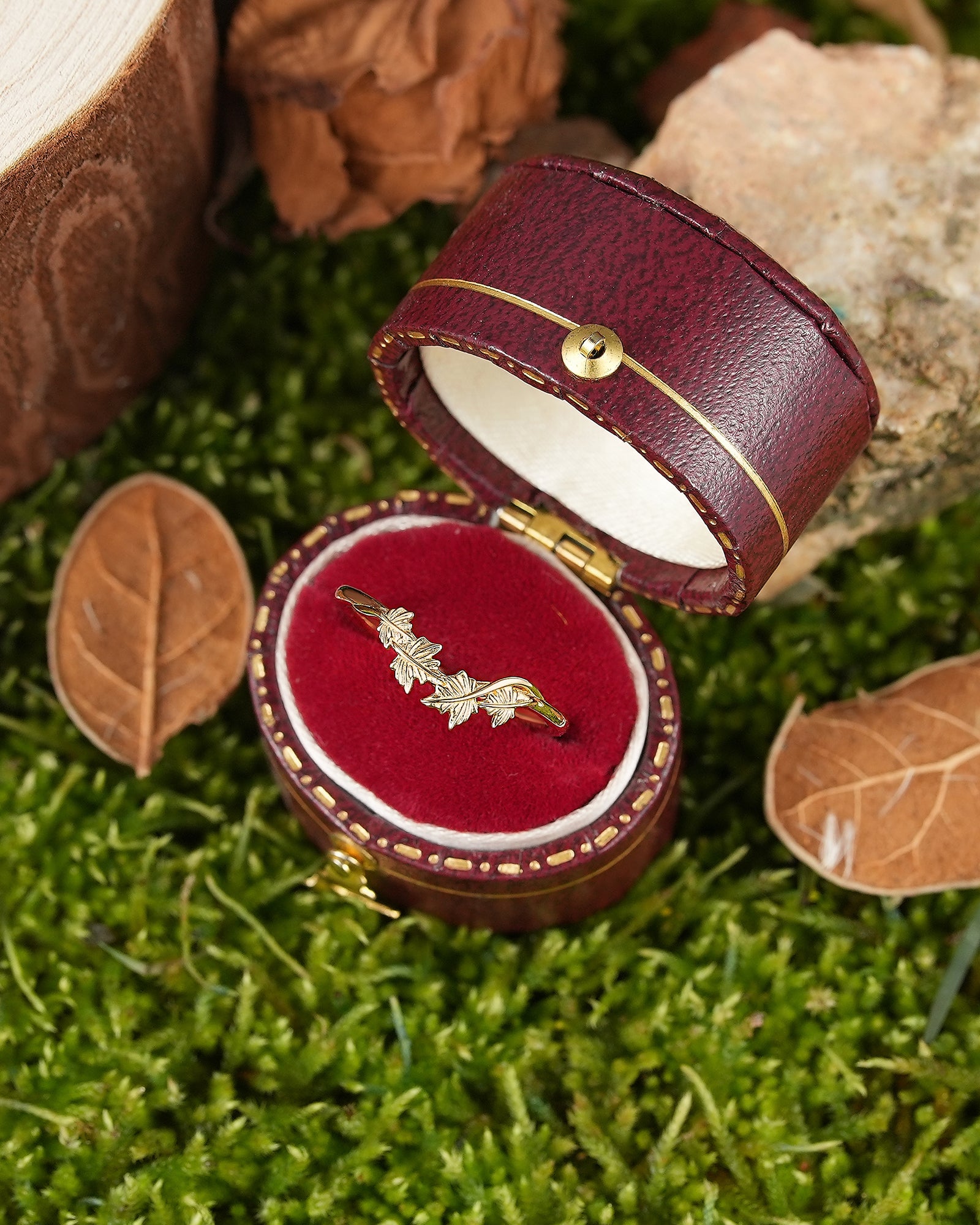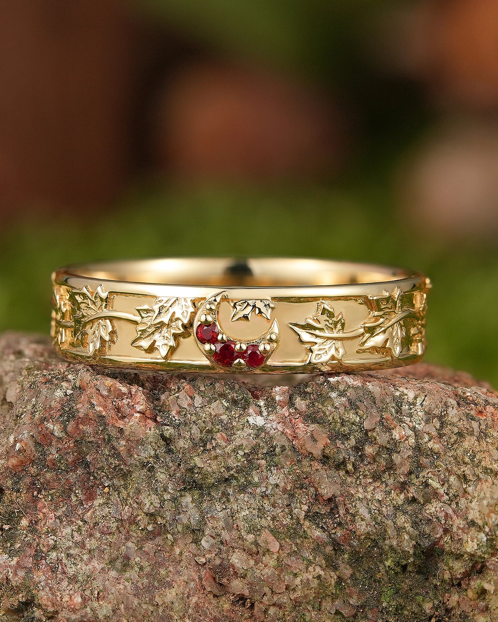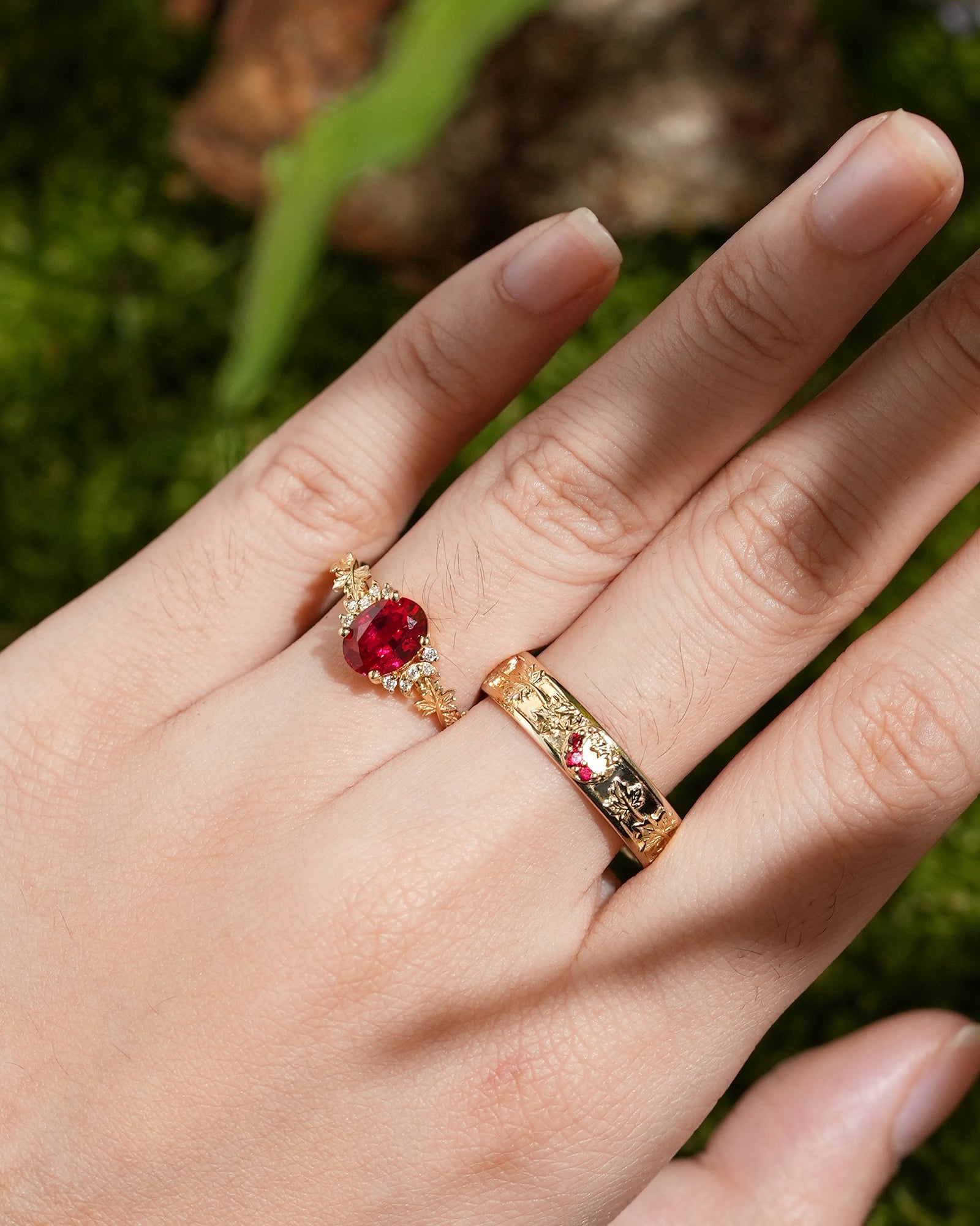 Maple leaf ring symbolizes romance, yearning and the rich beauty of life. The red color of maple leaf is warm and passionate, carrying the poetry of late autumn and the feeling of years. This ring is inspired by the unique shape of maple leaf, integrating the softness of nature and the profound meaning of life into the design, as if the mark of autumn surrounds the fingertips. Wearing a maple leaf ring is a commemoration of every precious emotion, and a tribute to the beauty of nature, making every day as colorful, warm and affectionate as autumn.