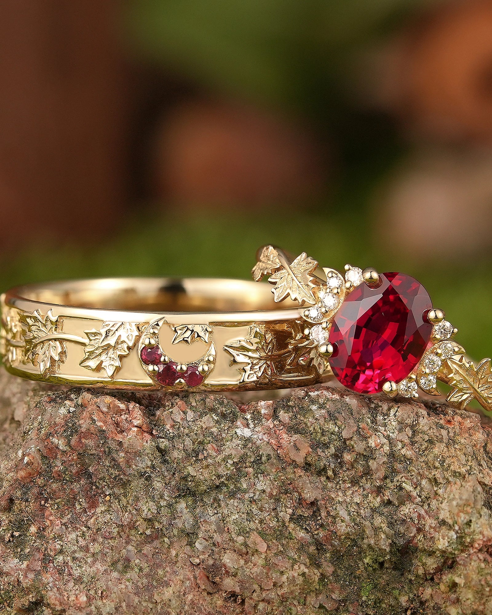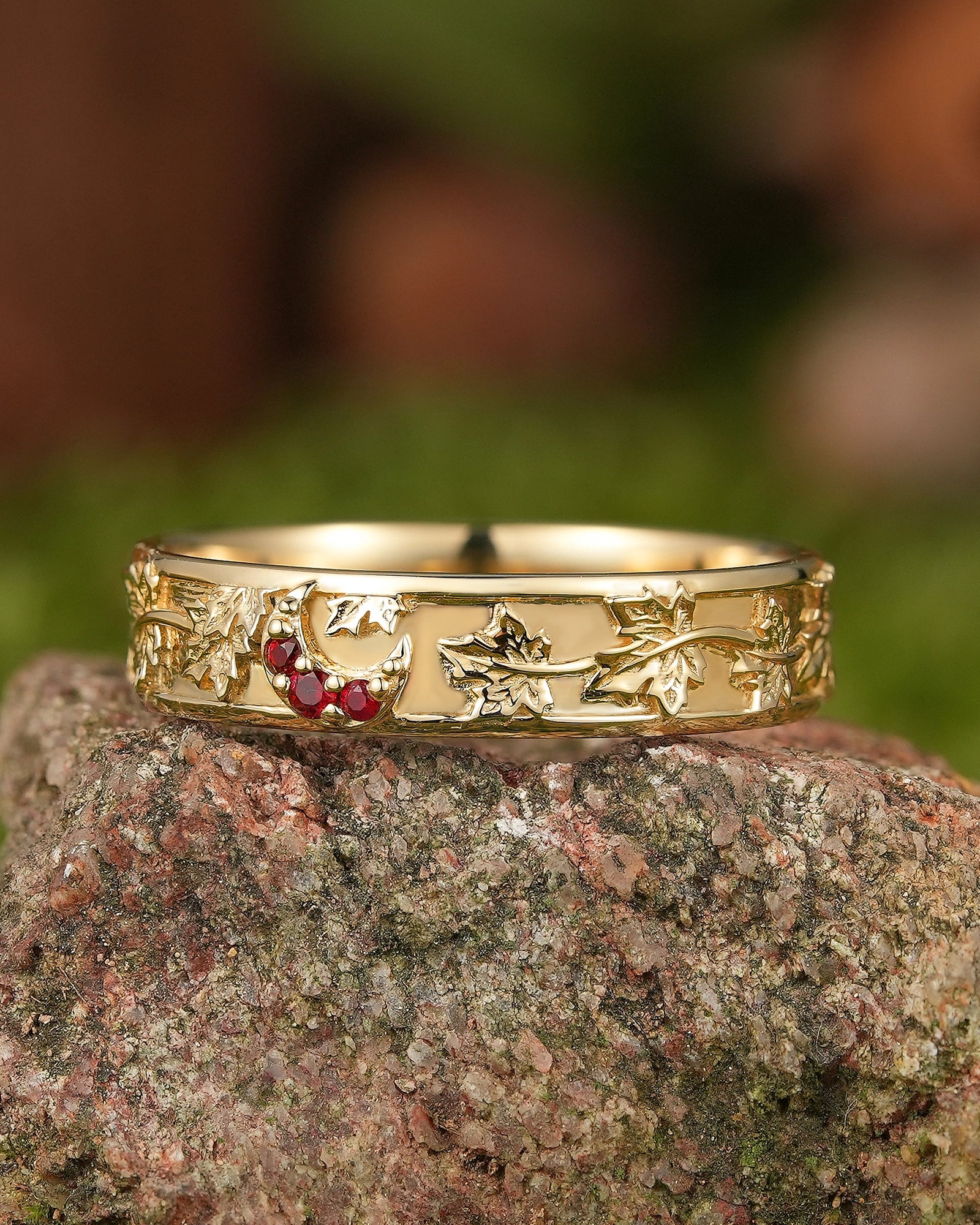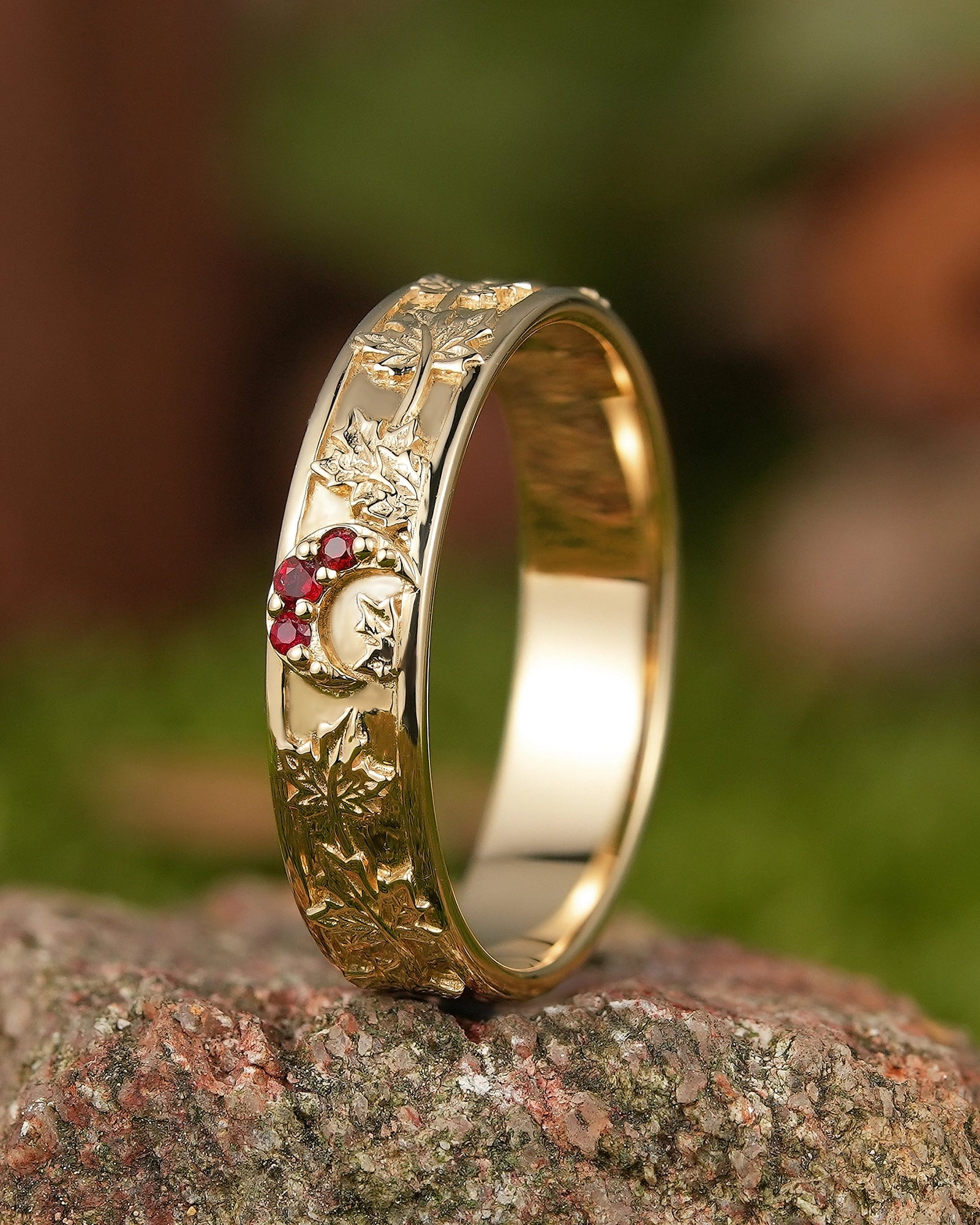 Maple leaf ring symbolizes romance, yearning and the rich beauty of life. The red color of maple leaf is warm and passionate, carrying the poetry of late autumn and the feeling of years. This ring is inspired by the unique shape of maple leaf, integrating the softness of nature and the profound meaning of life into the design, as if the mark of autumn surrounds the fingertips. Wearing a maple leaf ring is a commemoration of every precious emotion, and a tribute to the beauty of nature, making every day as colorful, warm and affectionate as autumn.