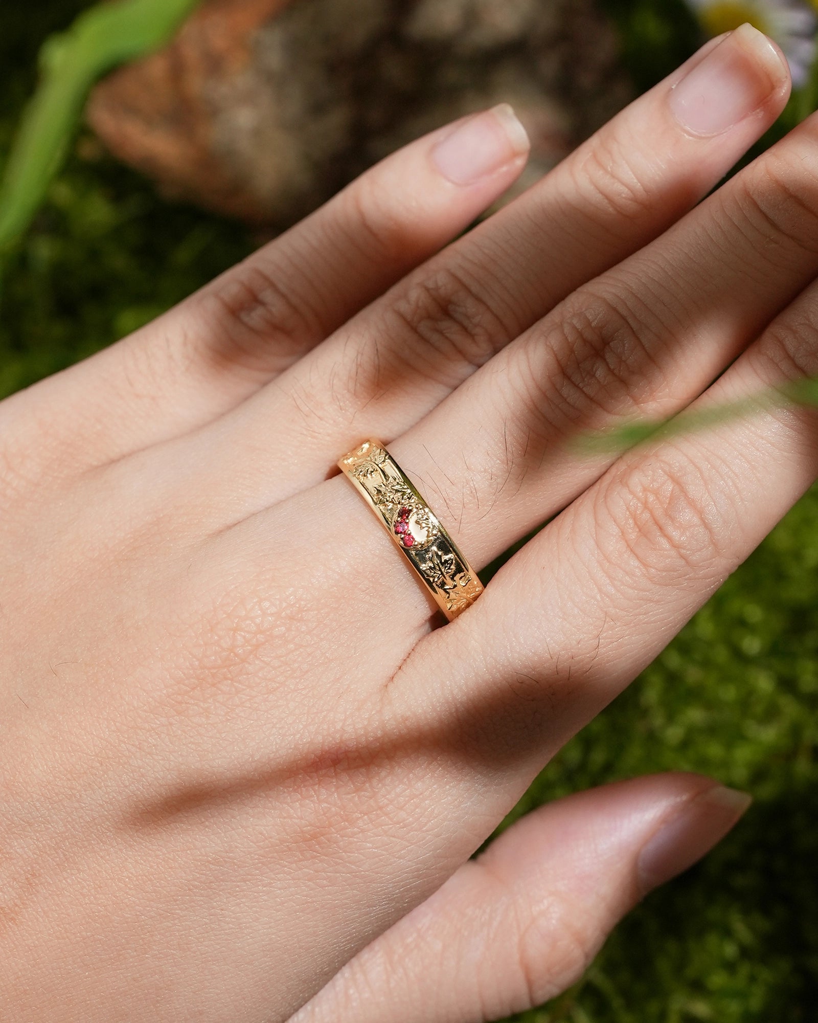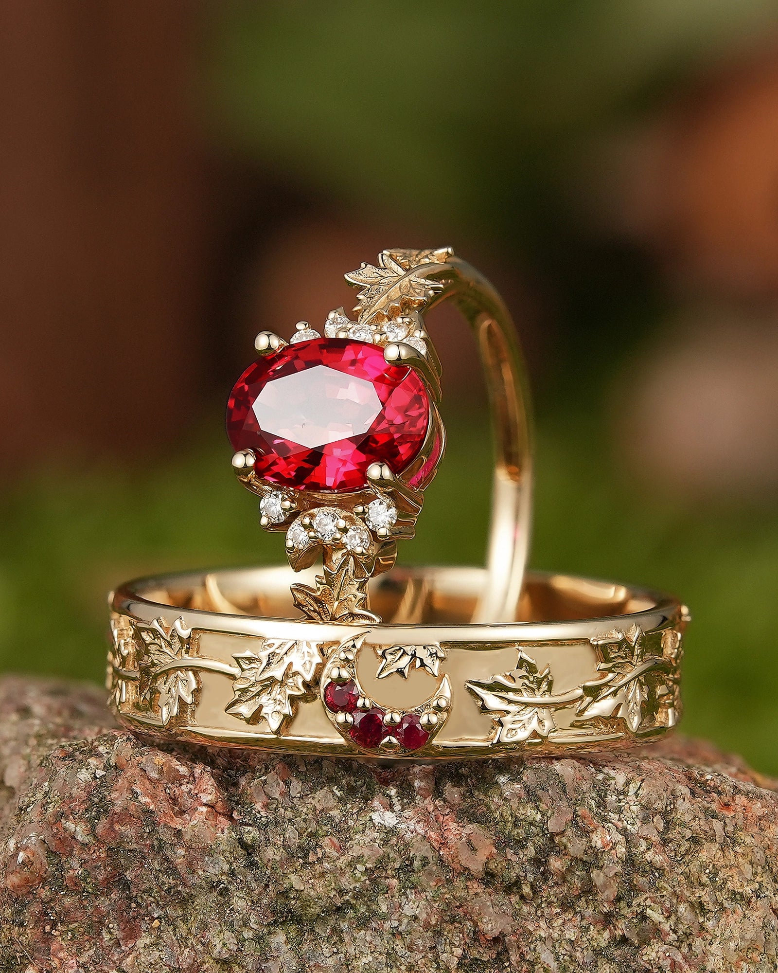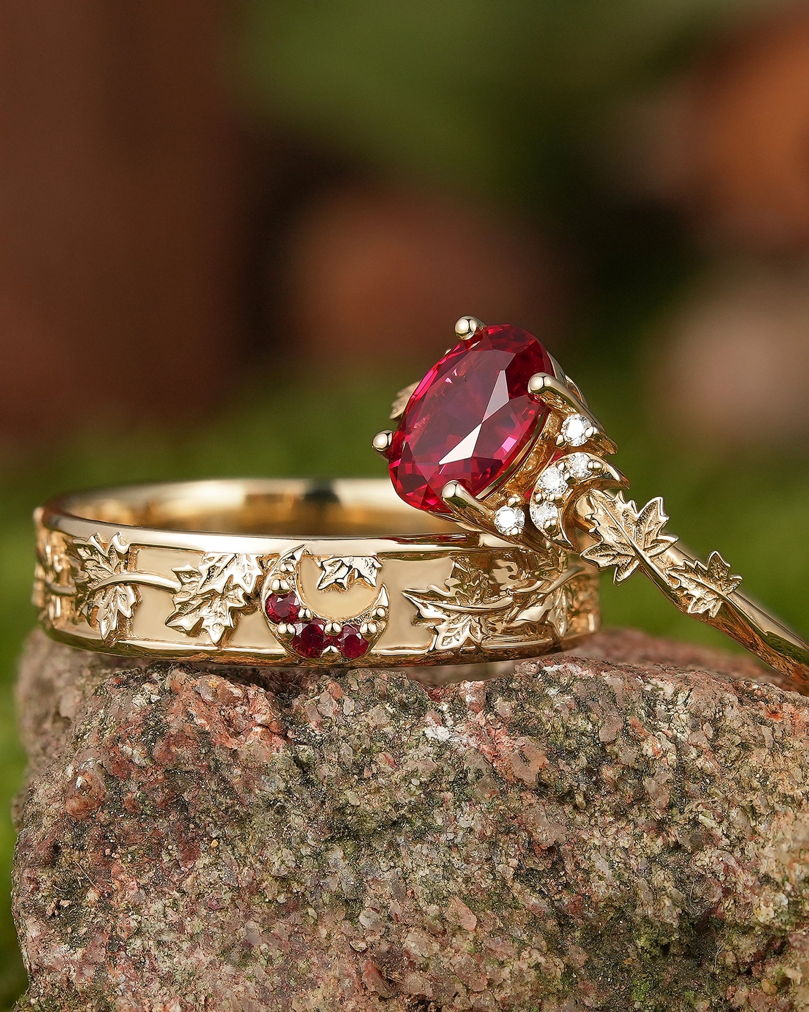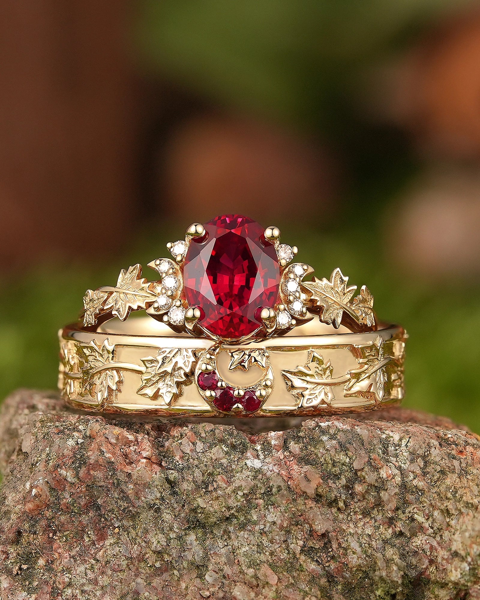 Maple leaf ring symbolizes romance, yearning and the rich beauty of life. The red color of maple leaf is warm and passionate, carrying the poetry of late autumn and the feeling of years. This ring is inspired by the unique shape of maple leaf, integrating the softness of nature and the profound meaning of life into the design, as if the mark of autumn surrounds the fingertips. Wearing a maple leaf ring is a commemoration of every precious emotion, and a tribute to the beauty of nature, making every day as colorful, warm and affectionate as autumn.