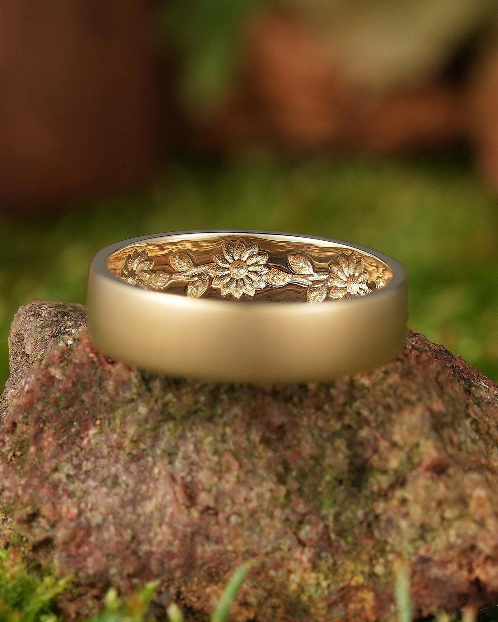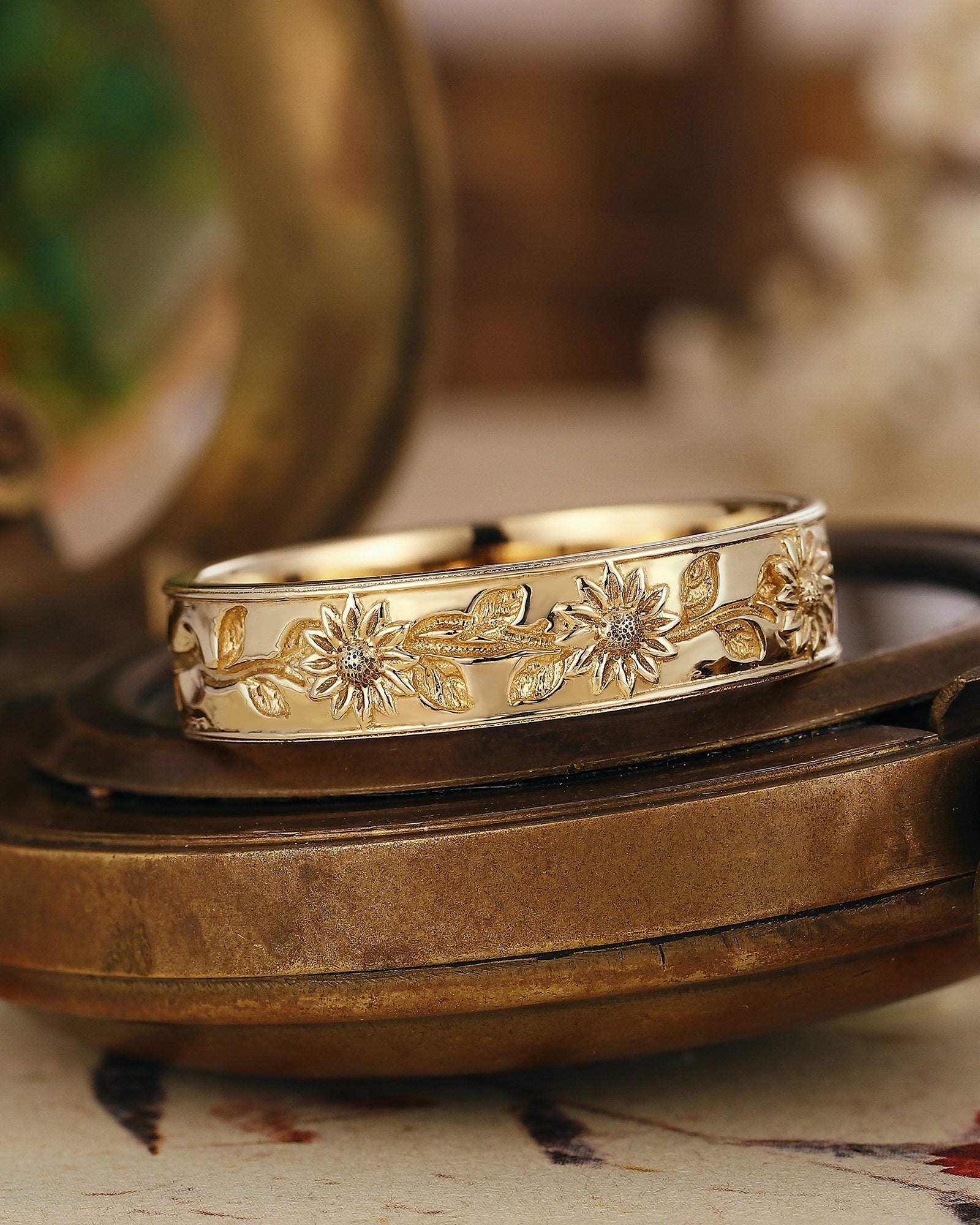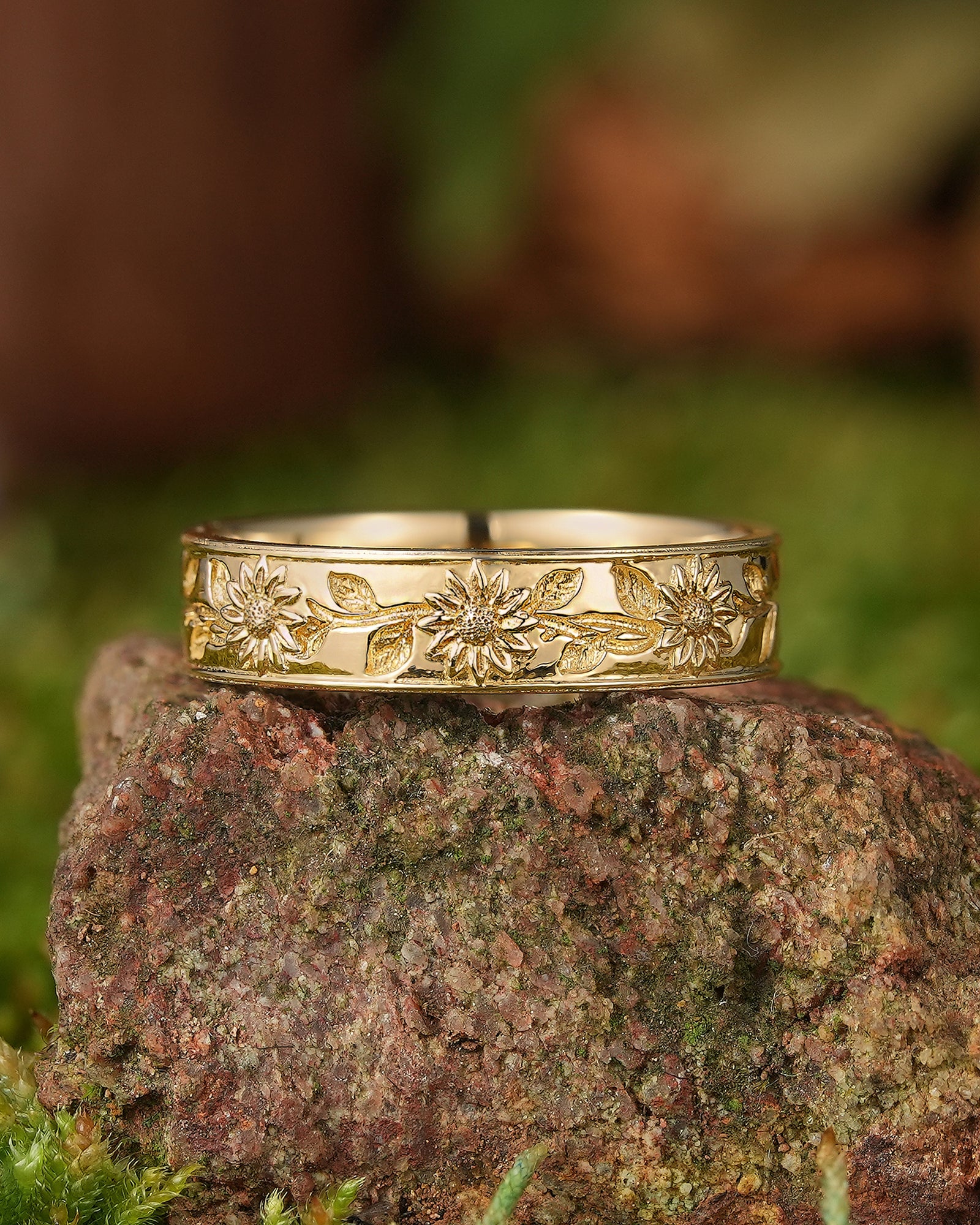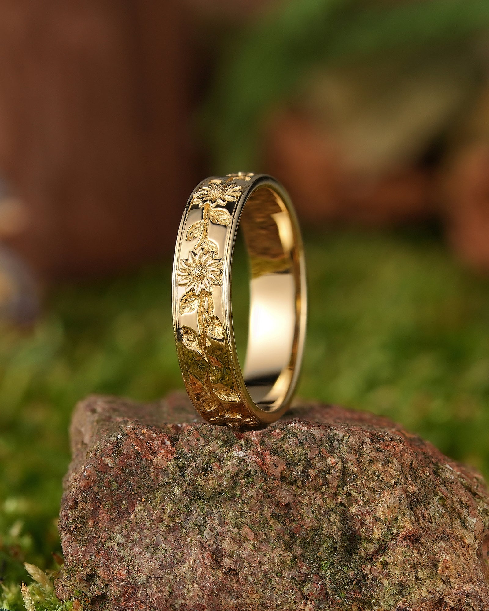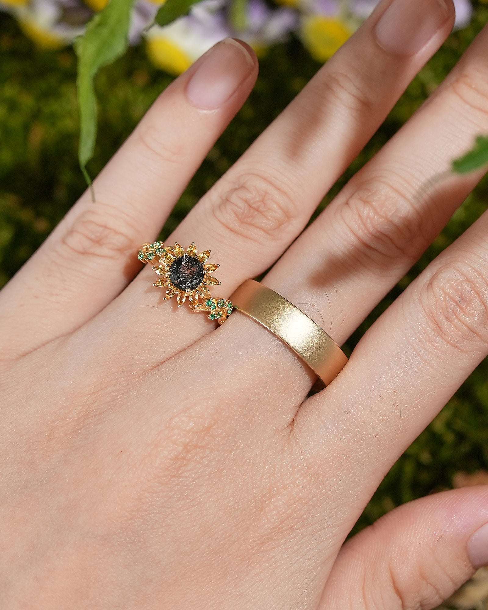 Sunflower rings carry sunshine, hope and courage. Each sunflower faces the sun, symbolizing a firm pursuit and positive strength. This ring, like a sunflower blooming on your fingertips, brings warmth and light.