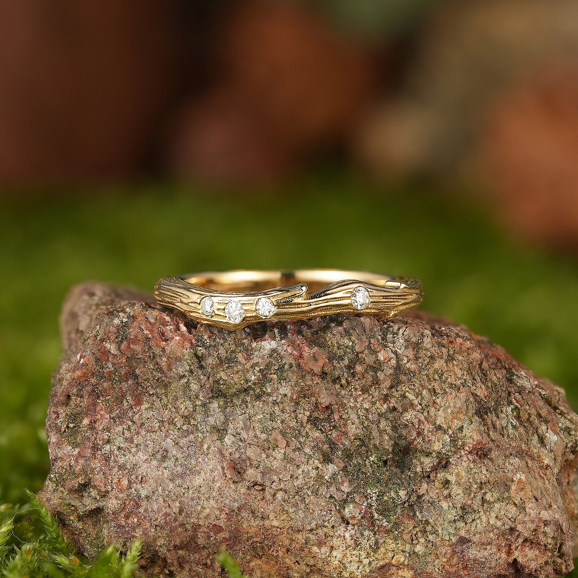 Bark Inspired | 2pcs Moissanite Forest Wedding Ring Set