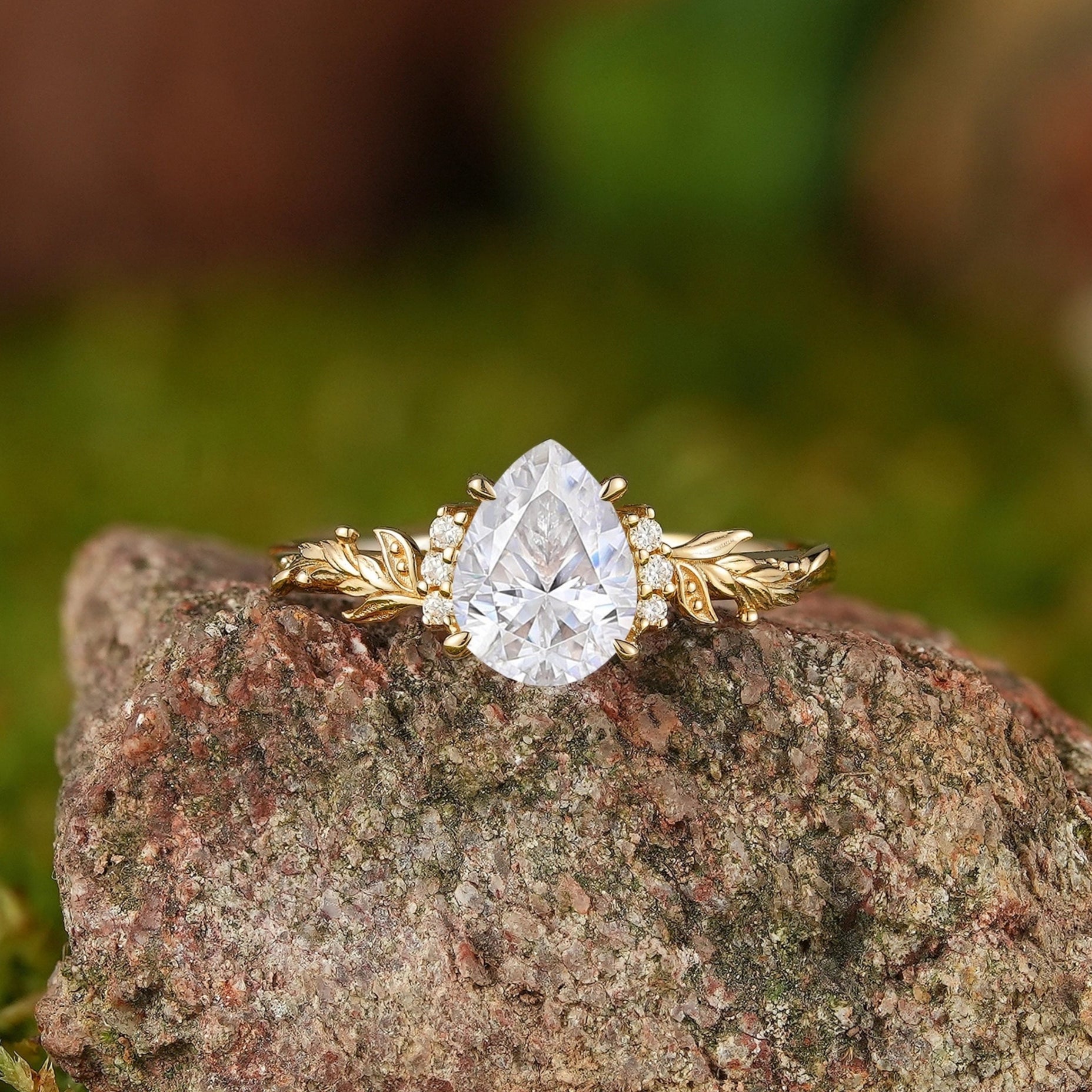 Vintage Heart Cut Moissanite Engagement Rings Yellow Gold Iavender Pattern Wedding Ring Cocktail Emerald Handmake Jewelry Promise Rings For Her