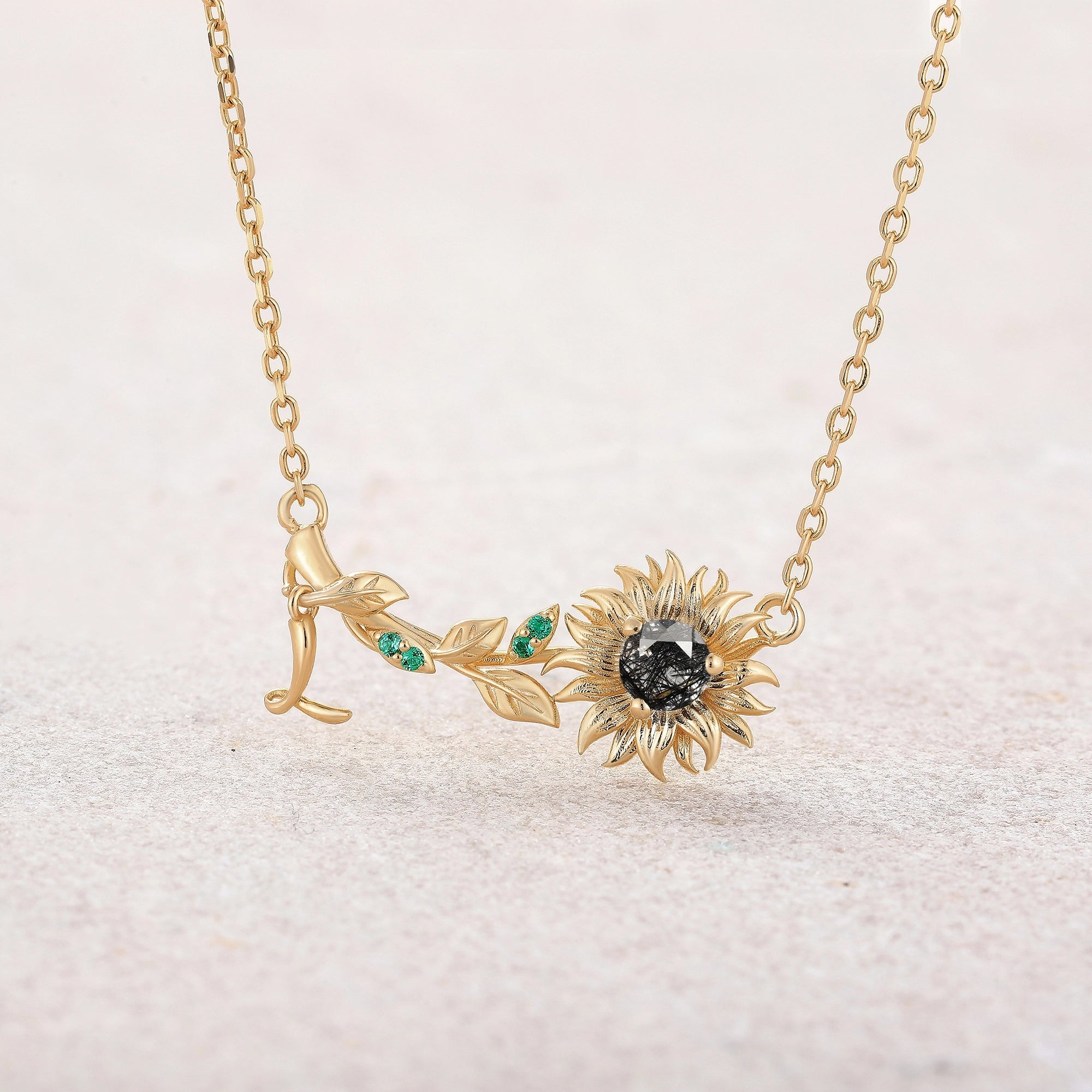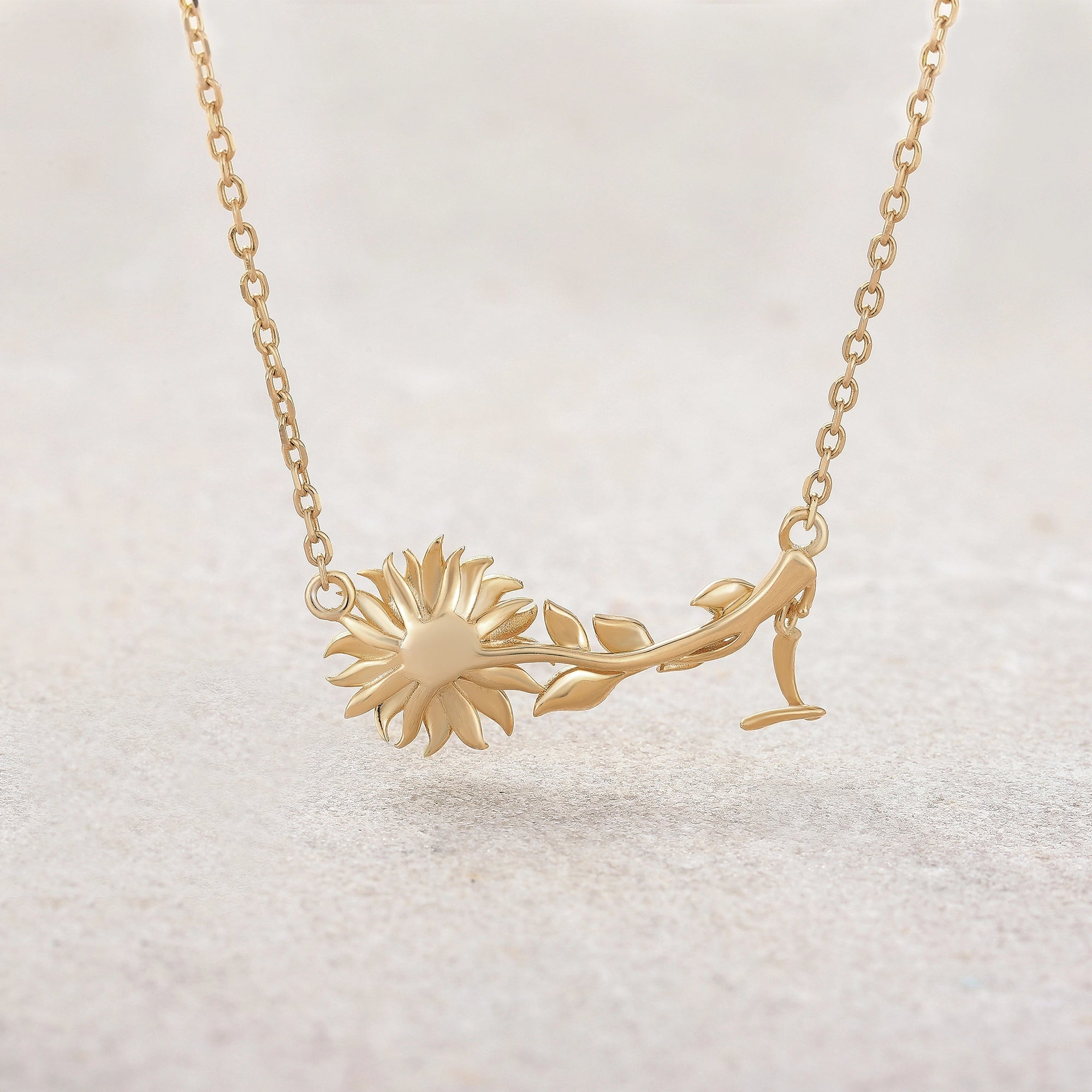 Nature Inspired Unique Sunflower Pendant Women Anniversary Necklace Yellow Gold Necklace For Engagement Ring graduation gifts For Mom