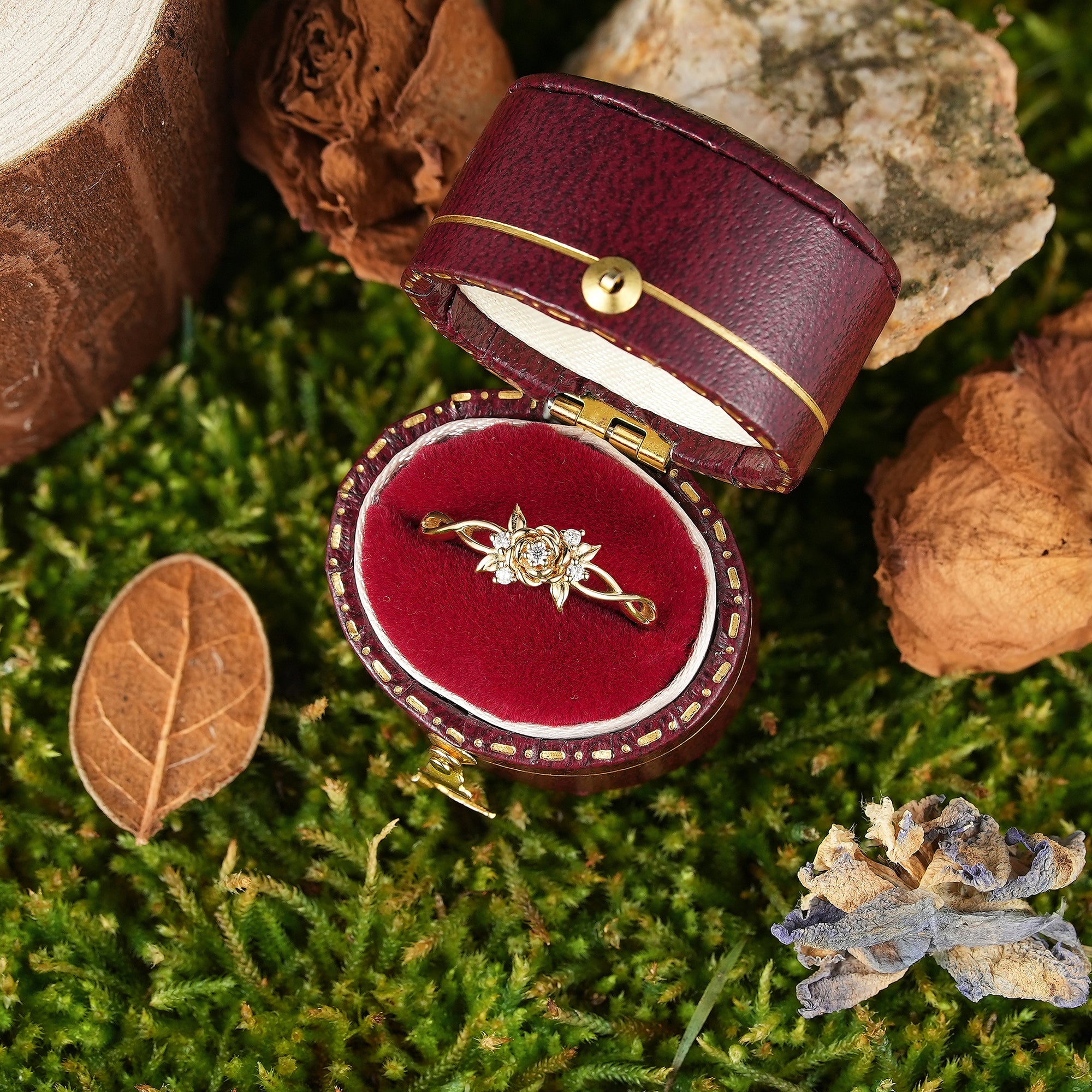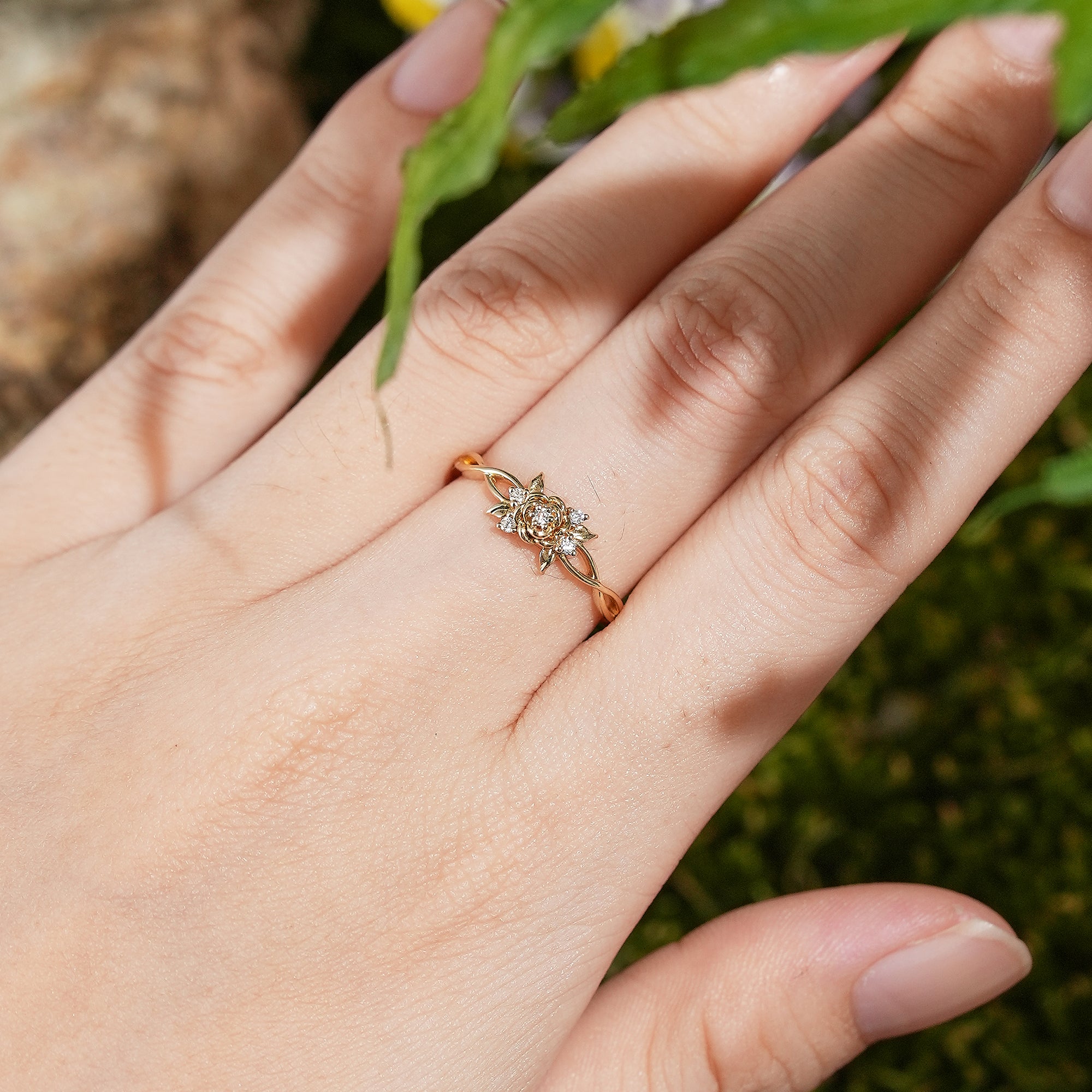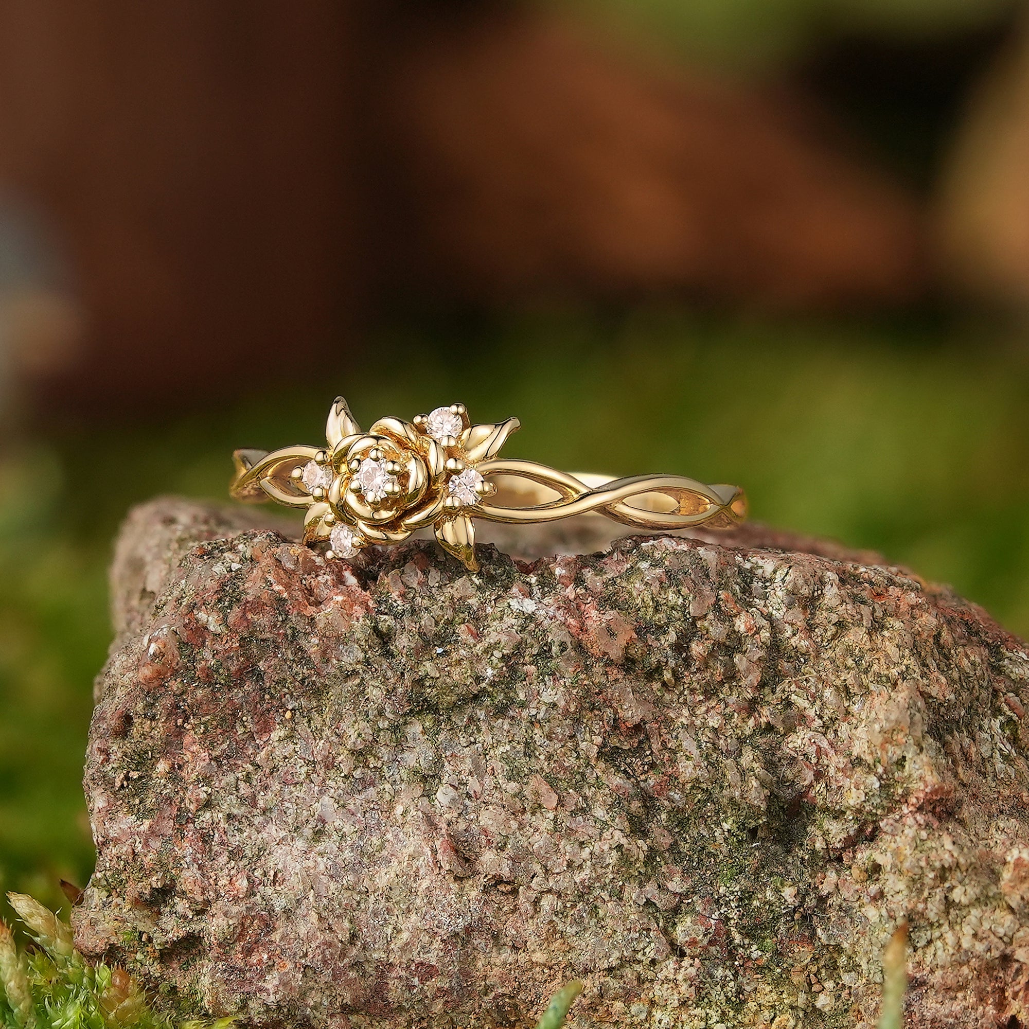 Unique Moissanite Leaf Floral Engagement Ring Nature Inspired Rose Ring Yellow Gold Dainty Diamond Wedding Ring Handmake Rings For Women