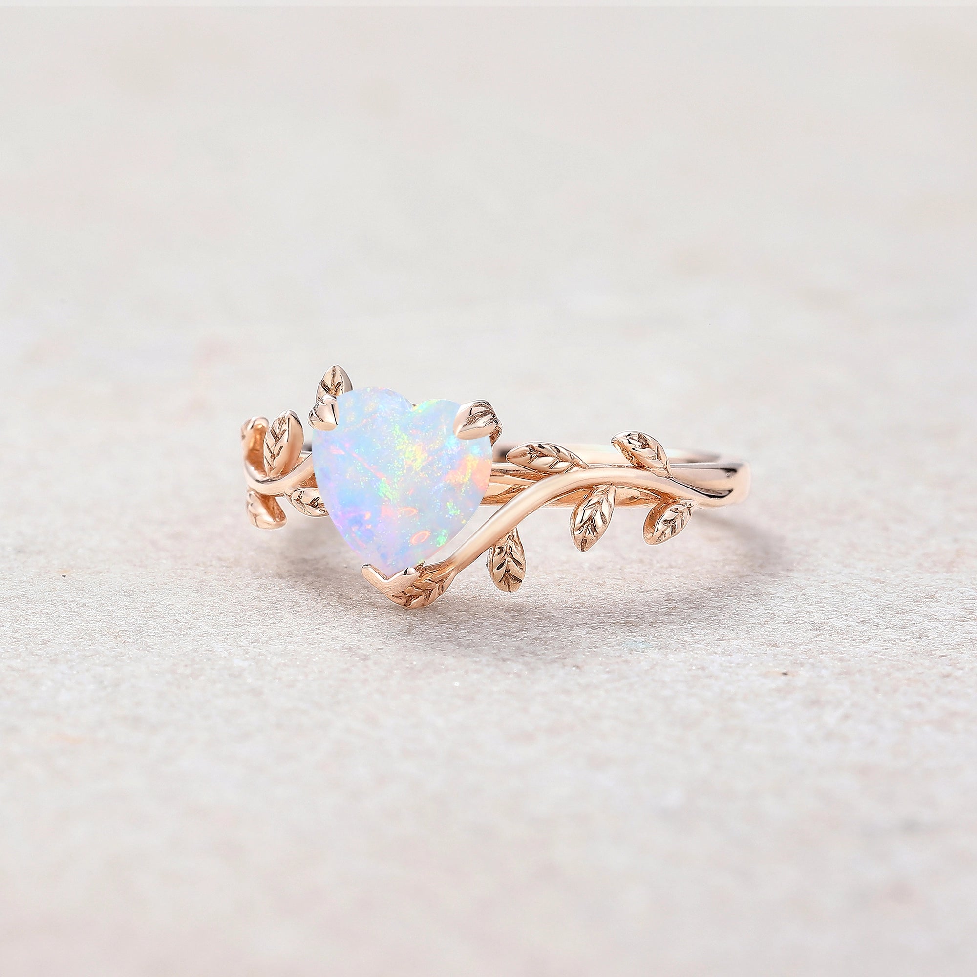 LCCjewelry | Nature Inspired Heart Cut Natural Opal Engagement Ring