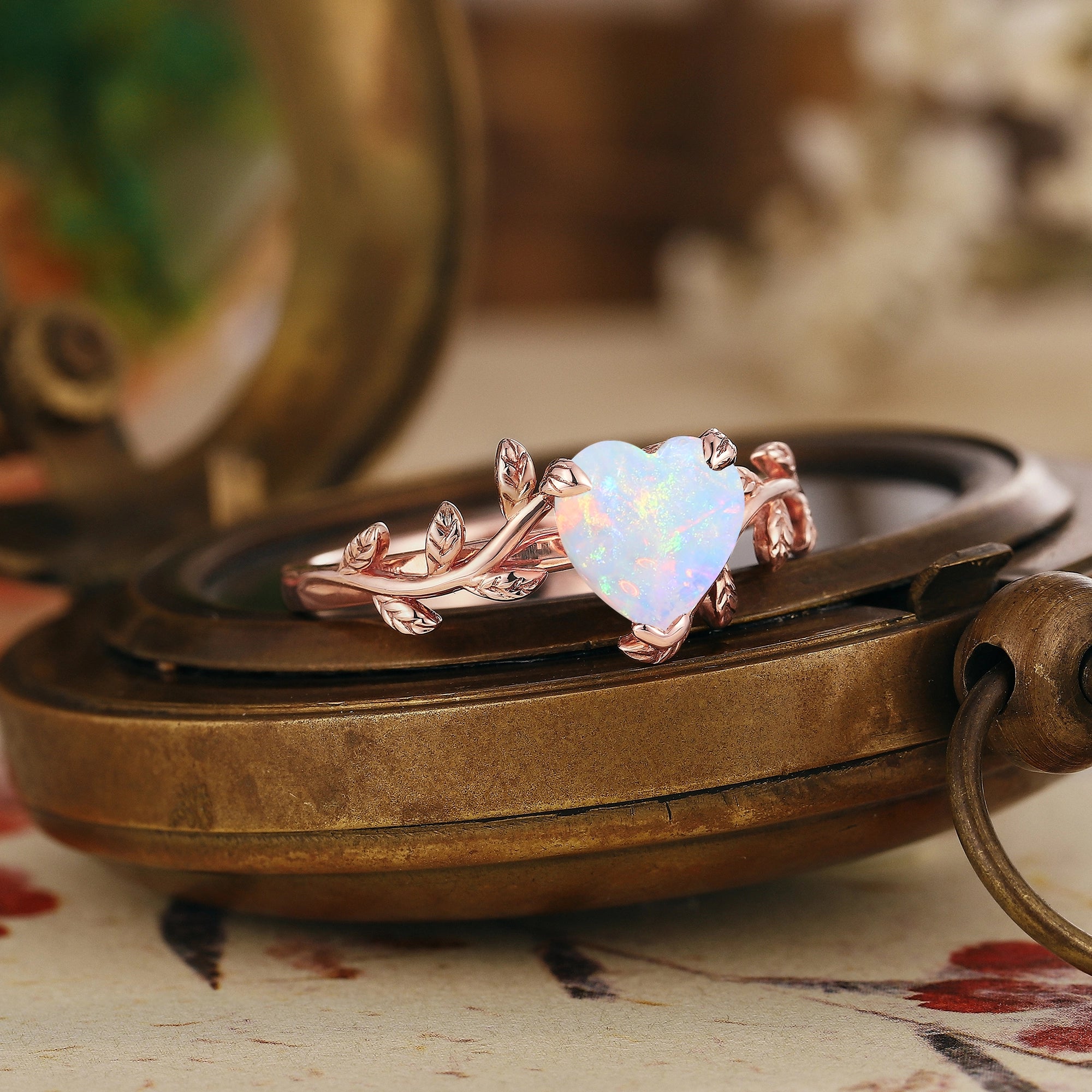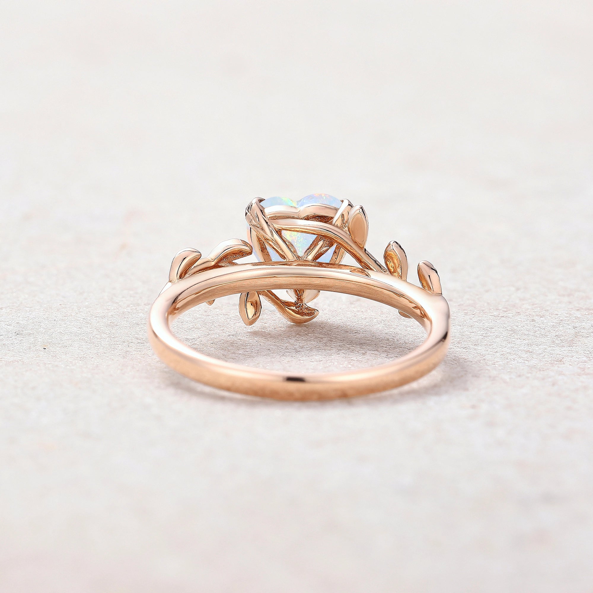 Vintage Heart Cut Natural Opal Engagement Ring Yellow Gold Nature Inspired Leaf Design Wedding Ring Anniversary Custom Rings For Women