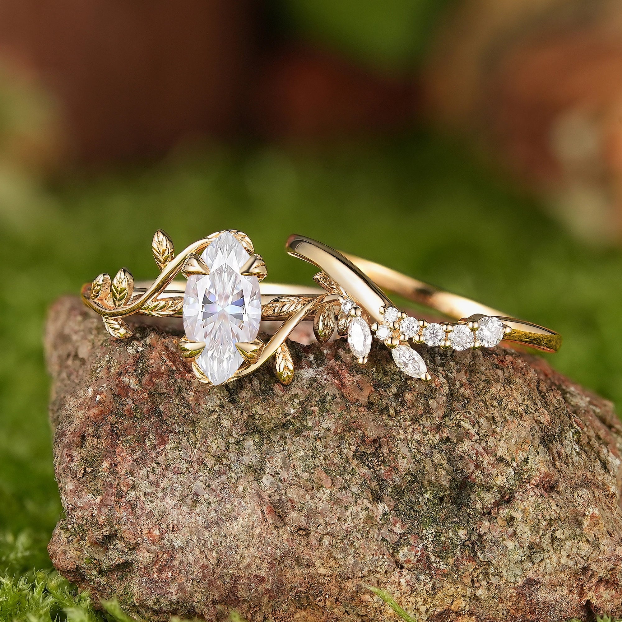 LCCjewelry | Unique Marquise Cut Moissanite Leaf Engagement Ring Set
