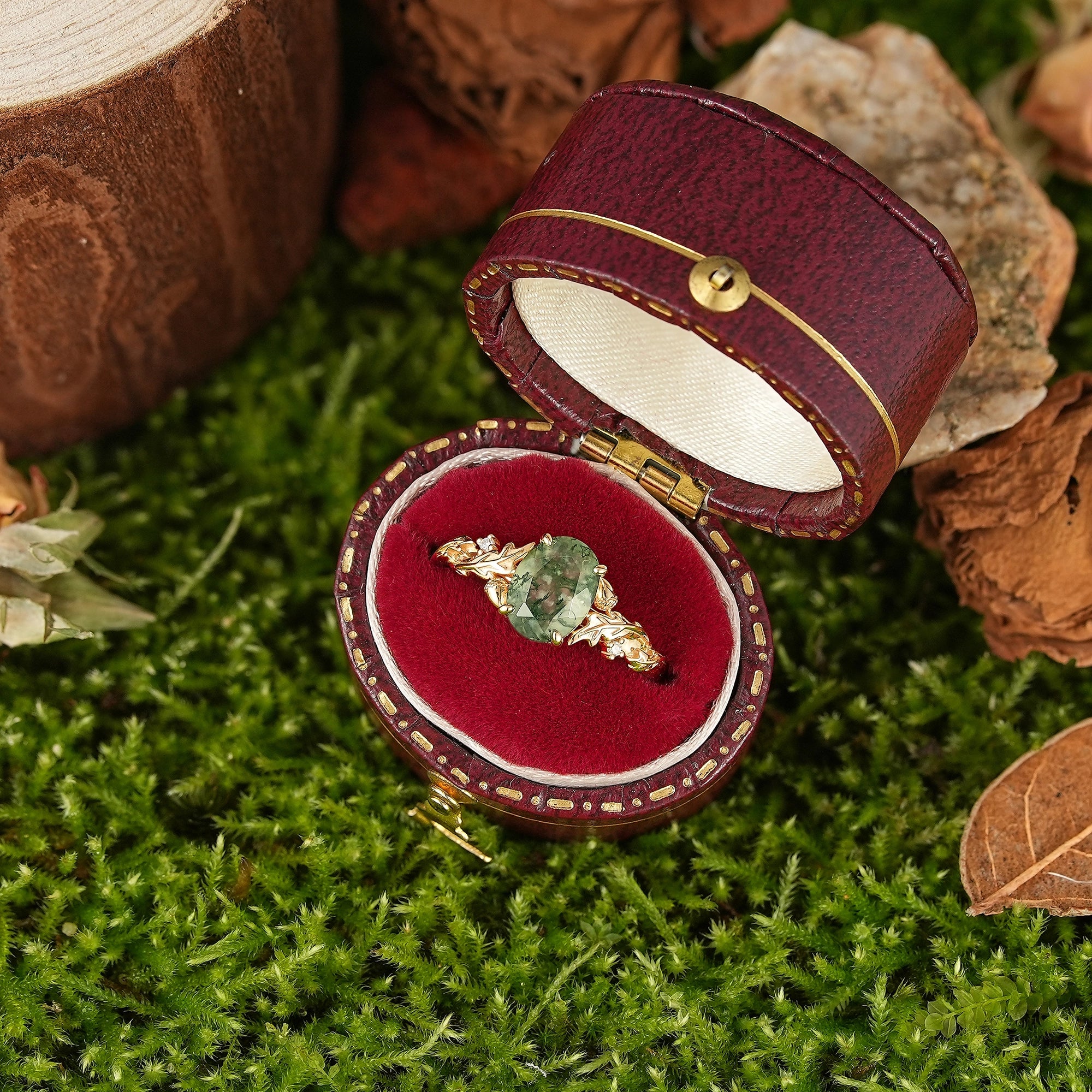 Leaf Inspired | Oak Leaf and Berry Design Moss Agate Engagement Ring