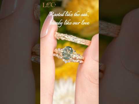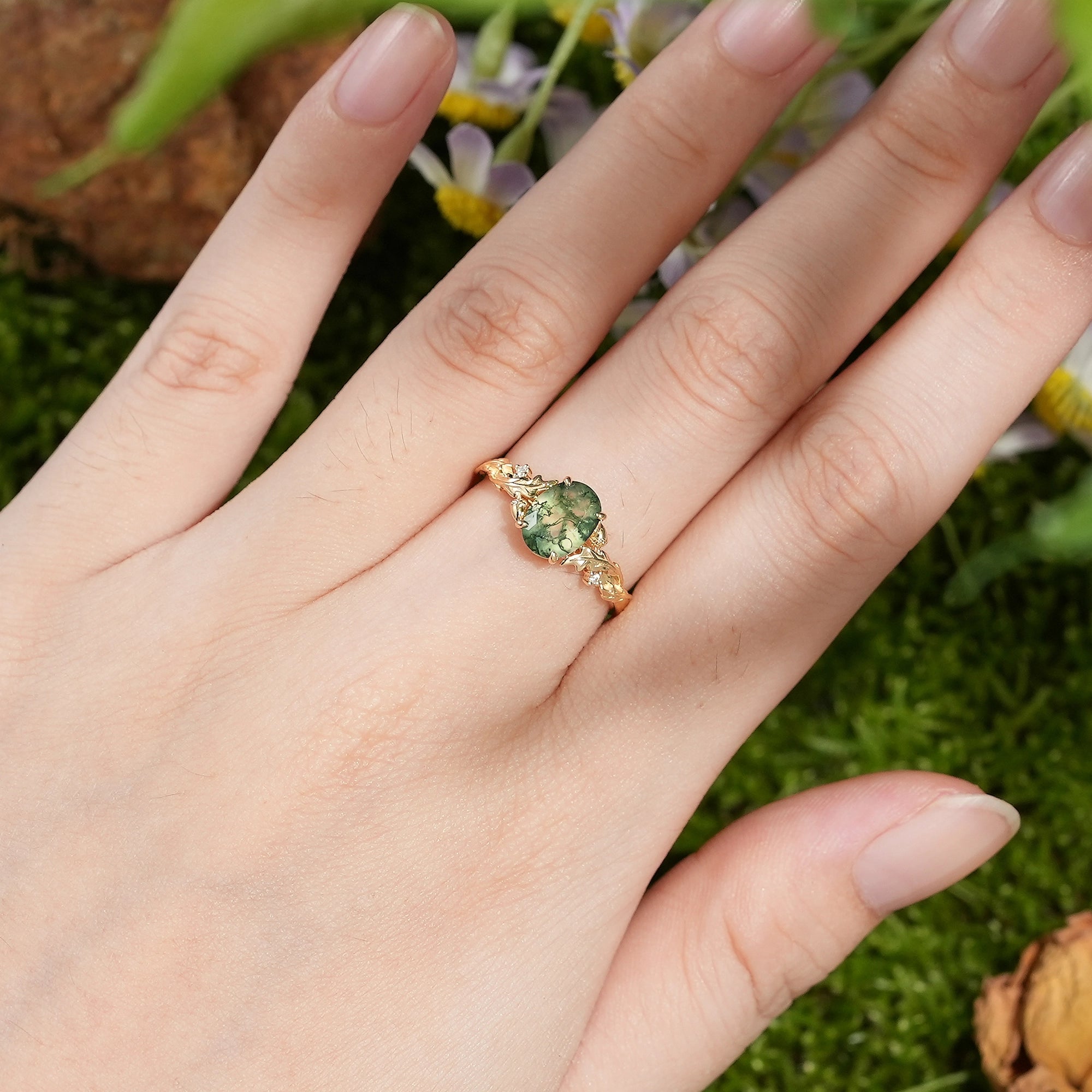 Yellow Gold Oak Leaf Design Twig Engagement Ring Oval Cut Moss Agate Wedding Ring Promise Rings For Women