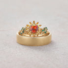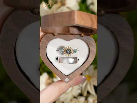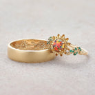 LCCjewelry | Sunflower Couple Ring & Gold Leaf Wedding Set