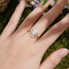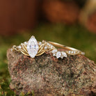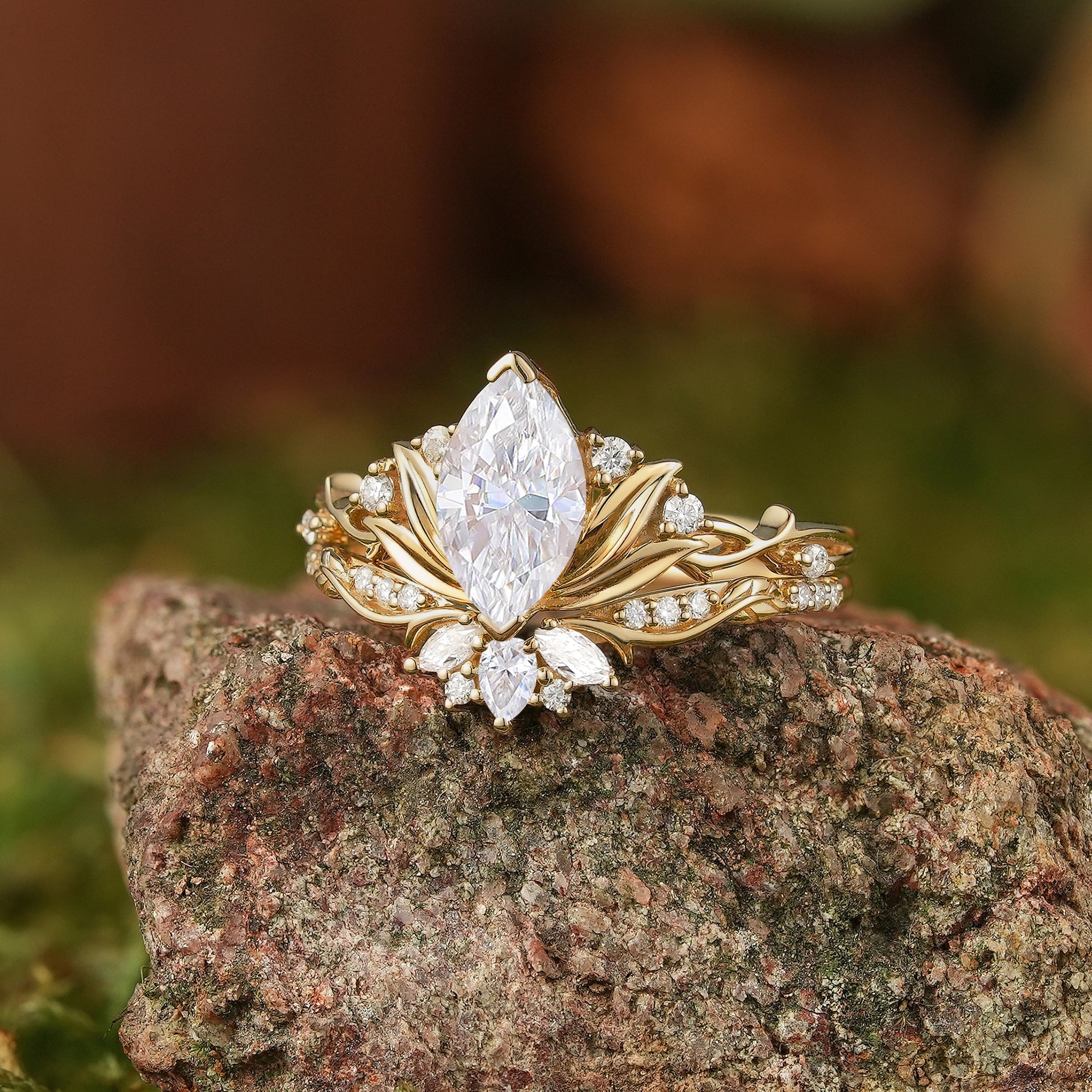 Unique Marquise Cut Moissanite Floral Engagement Ring Set Nature Inspired Lotus Design Wedding Ring Yellow Gold Handmake Promise Rings For Women
